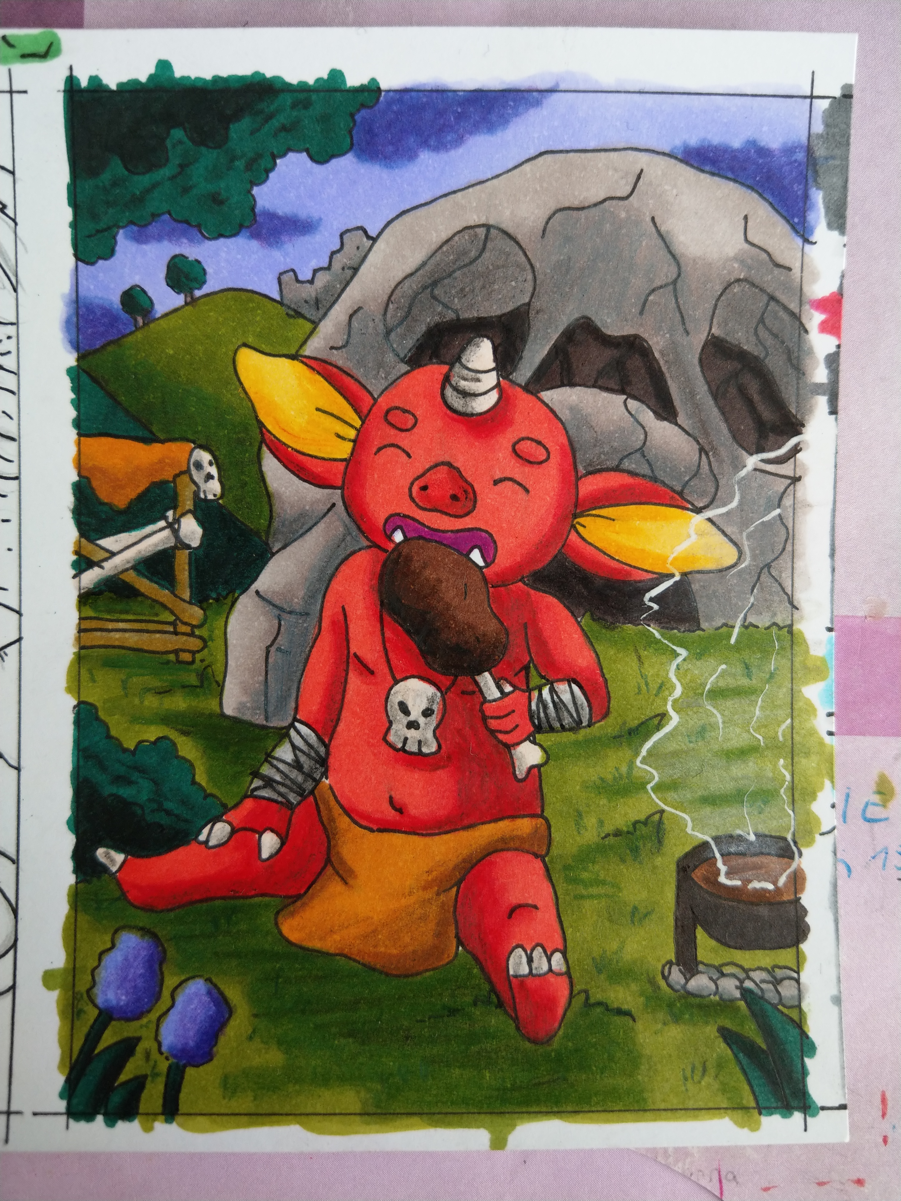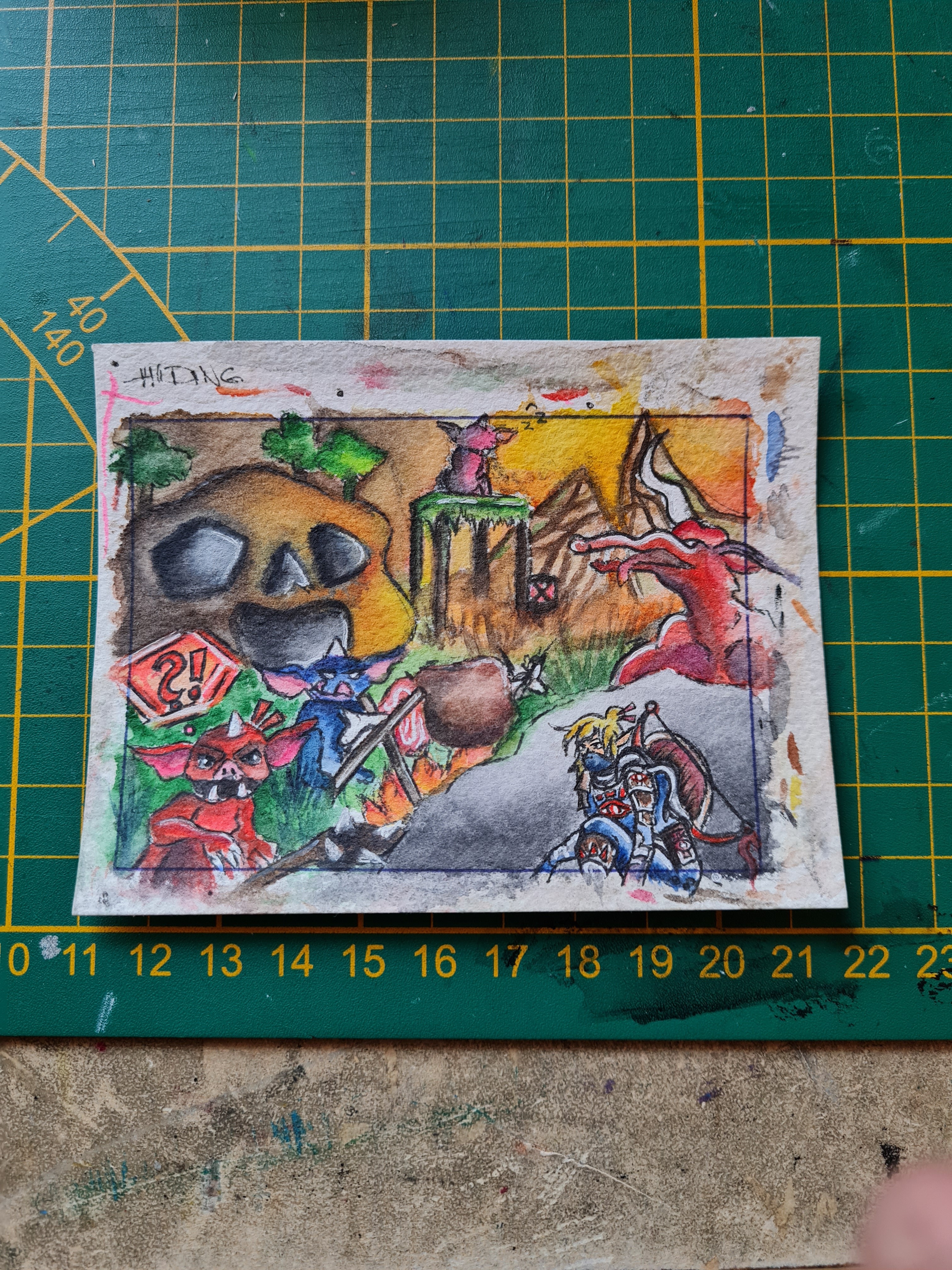Ich habs endlich auch mal geschafft noch einmal über die Karte drüber zu gehen. Der Bokblin hat die Schatten mit etwas braun noch einmal nachgedunkelt bekommen. Hier und da im Hinterhrund bin ich auch noch mal drüber. Ich glaube nur das Foto schluckt es und man sieht darauf kaum einen Unterschied…