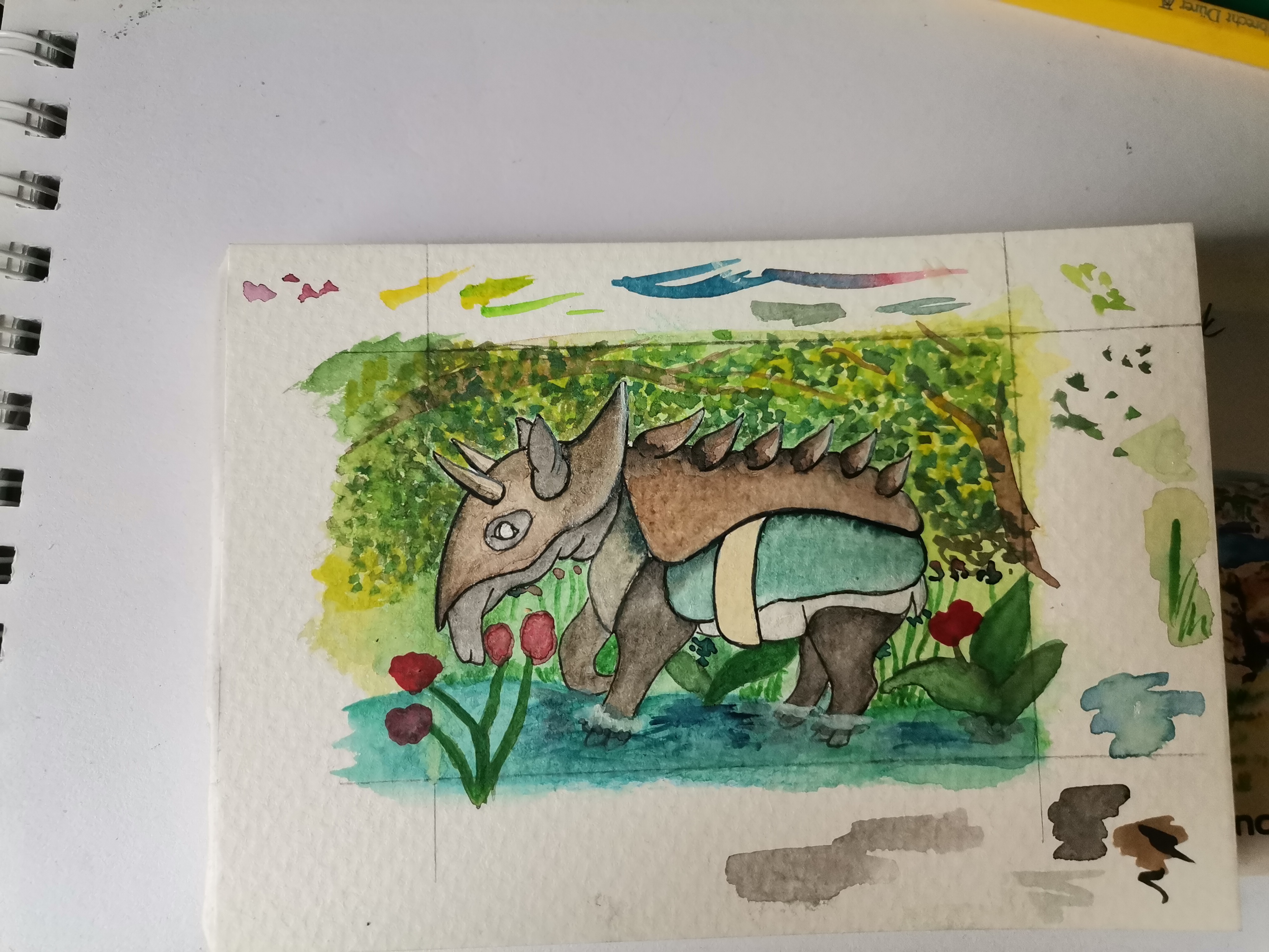 Ja, das sind gute Ideen. Solche feinen Details wollte ich dann später mit Buntstift machen, da ich mit Aquarell noch nicht so geübt bin, um so etwas zu schaffen.