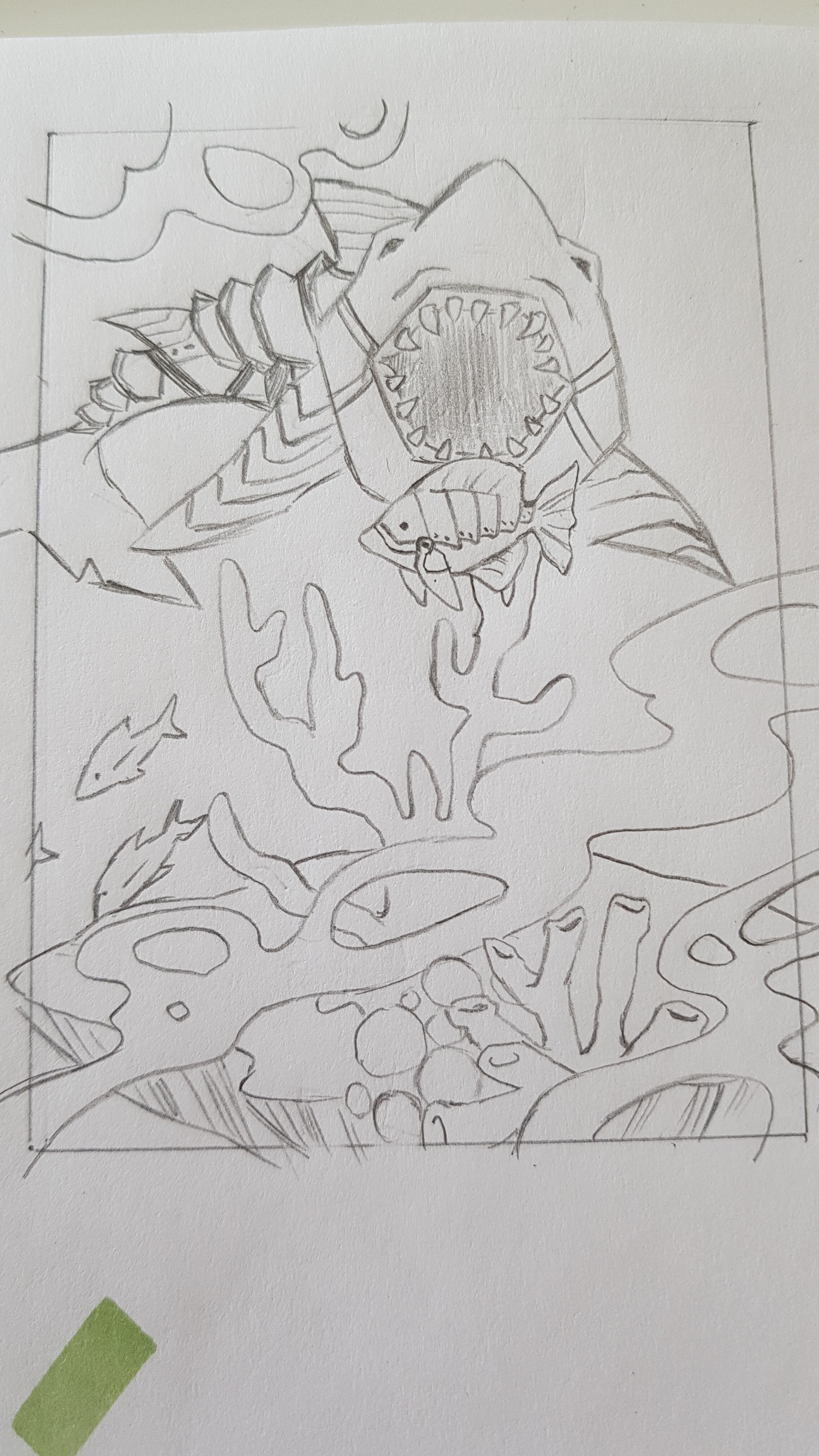 diese Idee mit dem Hai finde ich auch cool und spannend dargestellt, wobei da das Korallenriff im unteren Vordergrund dem Hai irgendwie die Show stiehlt :)