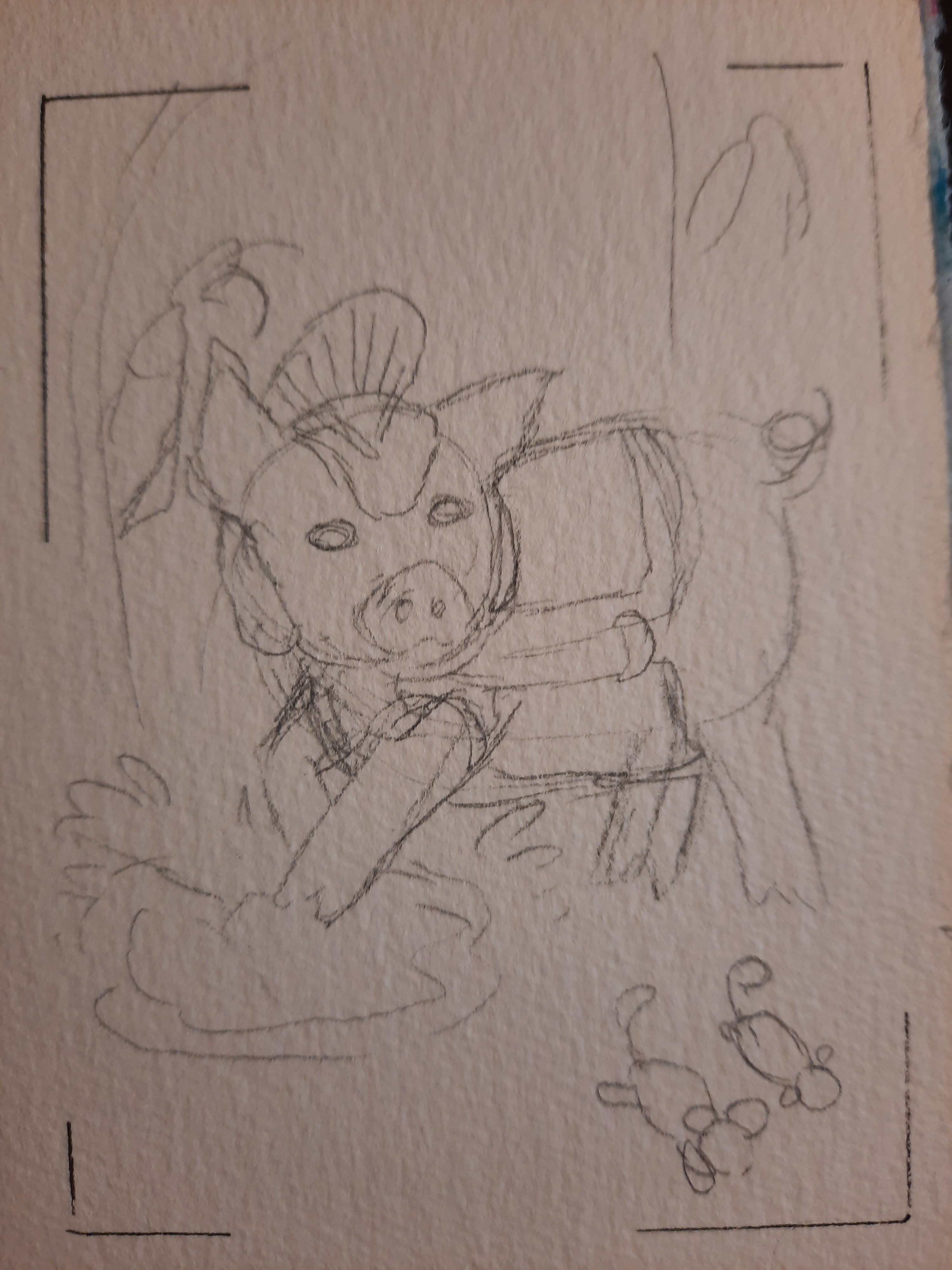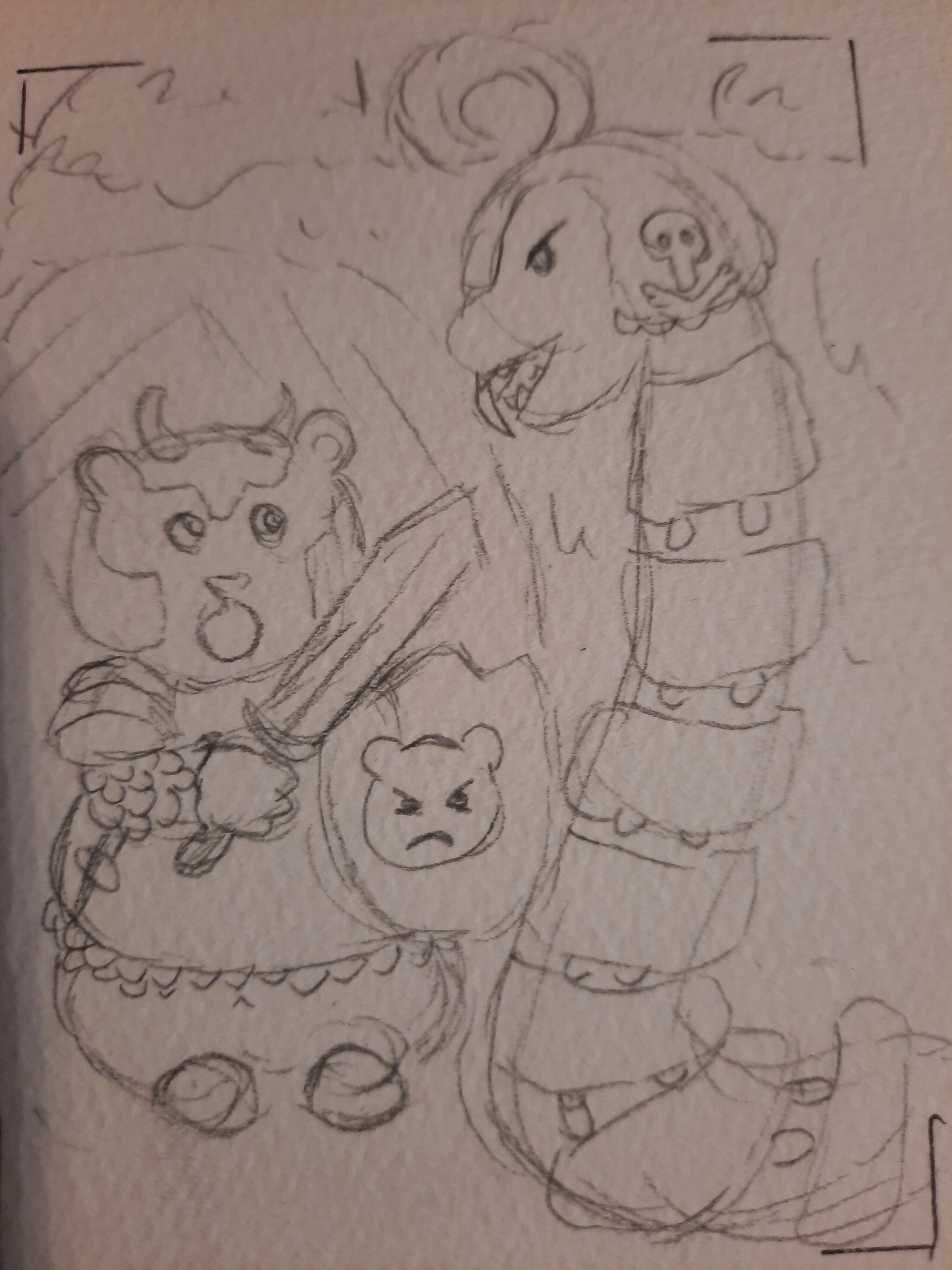 Ähnlich wie bei Sphriggas Chamäleon könnte die Rüstung des Tapirs noch mehr Details vertragen. Die braune Schutzplatte auf dem Rücken und das türkise Tuch sind sehr groß und präsent dargestellt. Evtl. hat die Panzerung bereits einige Schrammen oder Kratzer oder einige Ledernahtdetails, Nieten, Klammern, o.ä. (falls es Leder sein sollte)?