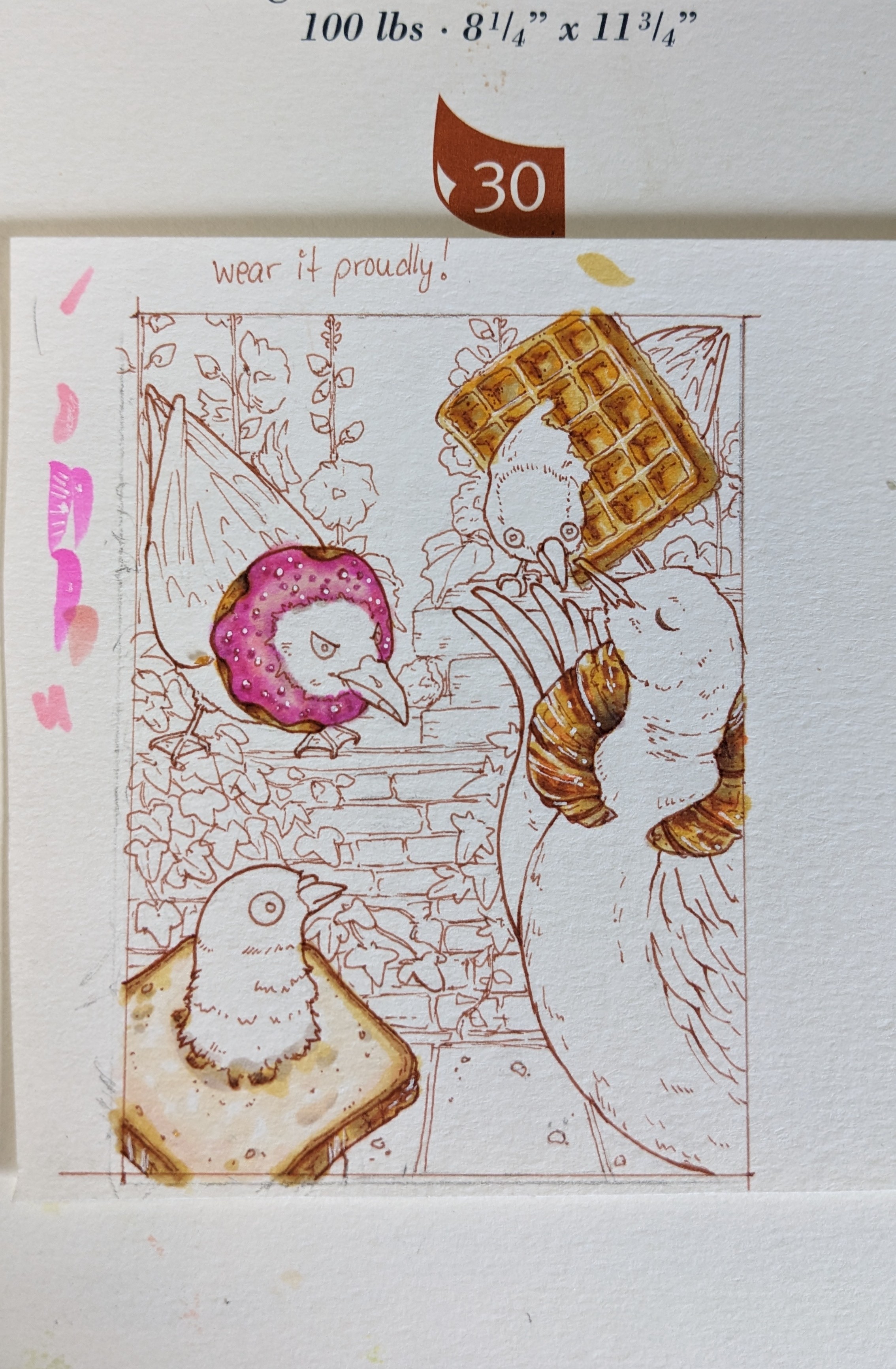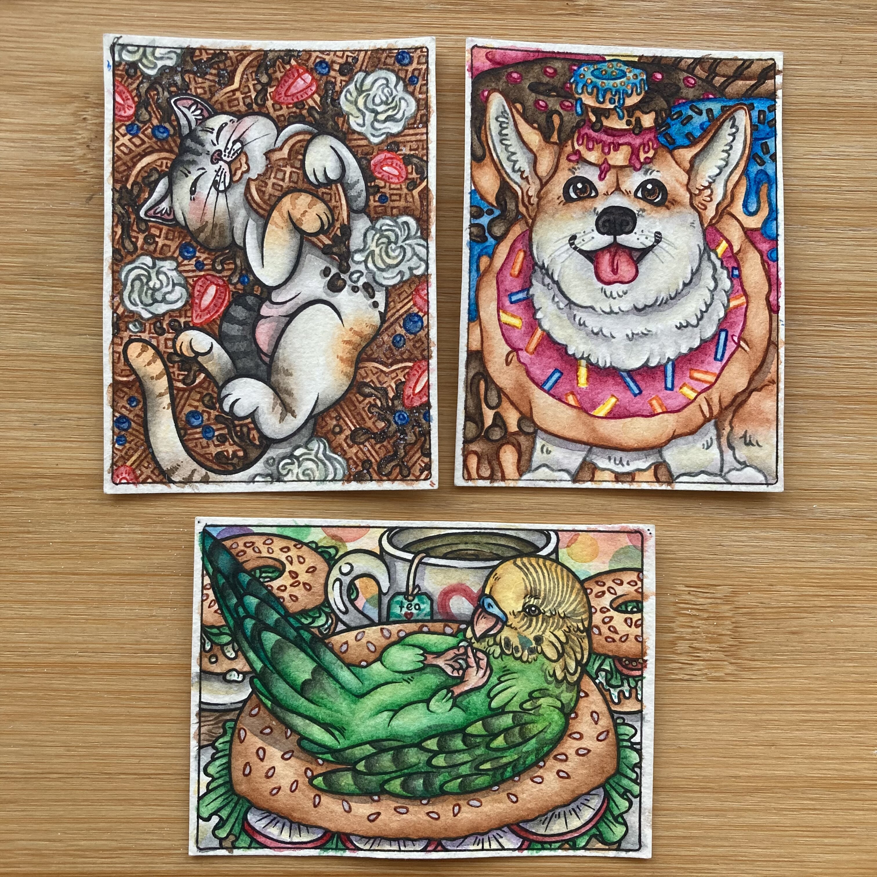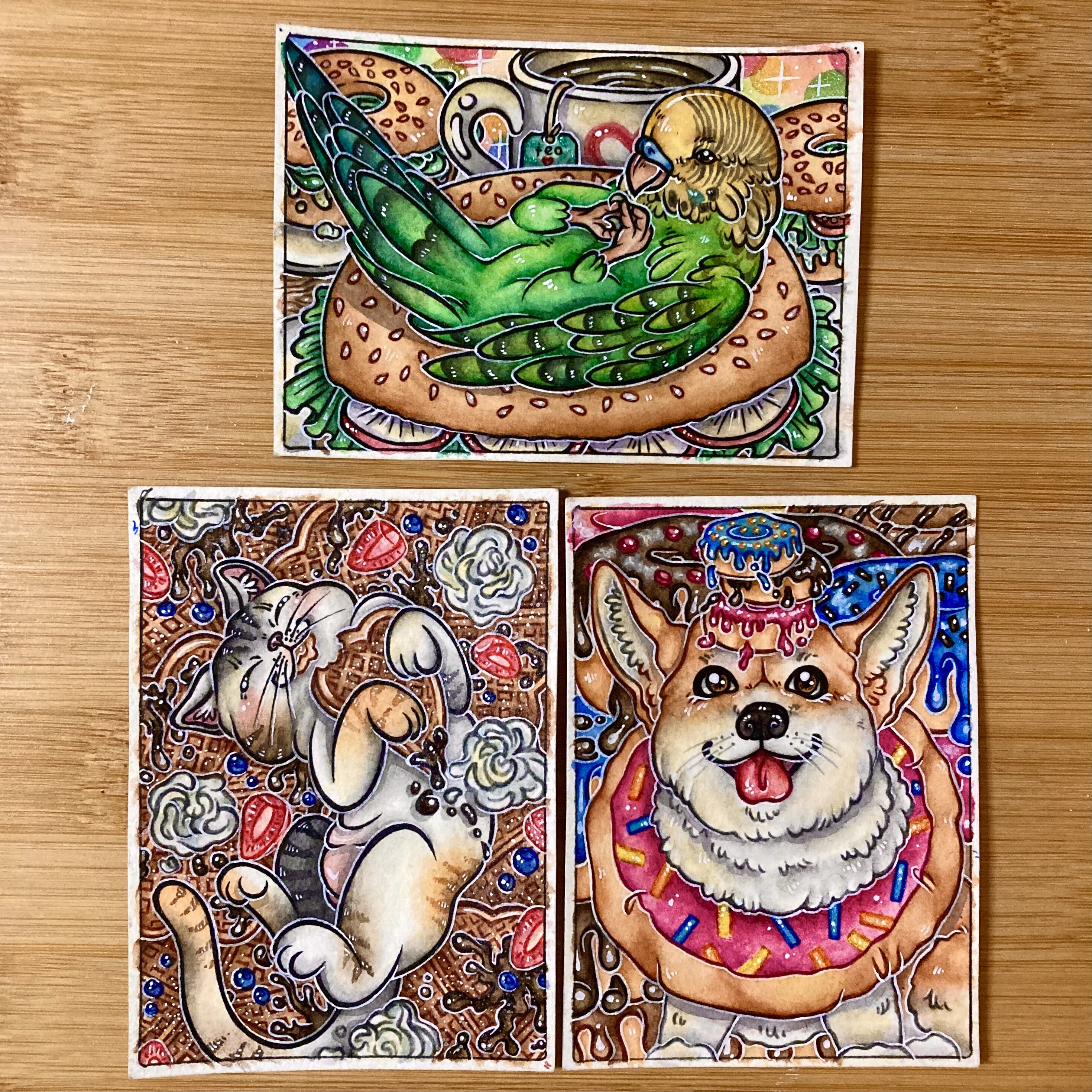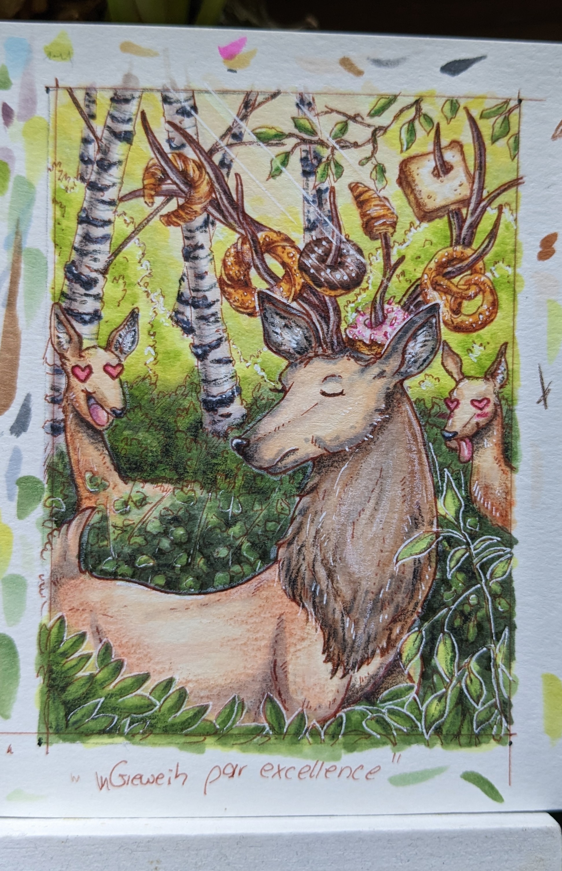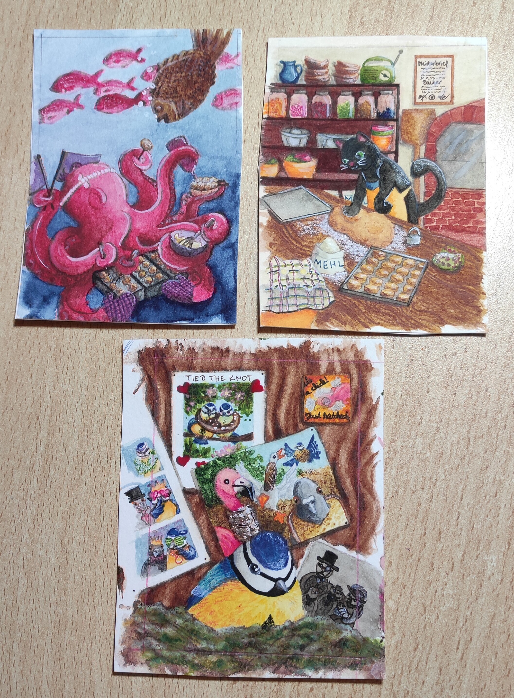 Die Hirschkarte ist wohl soweit fertig und bei der Vogelkarte zumindest schonmal die wichtigen Backwerke! Ich konnte nicht anders als der grimmigen Möwe einen cuten, pinken Zuckerguss zu verpassen xD