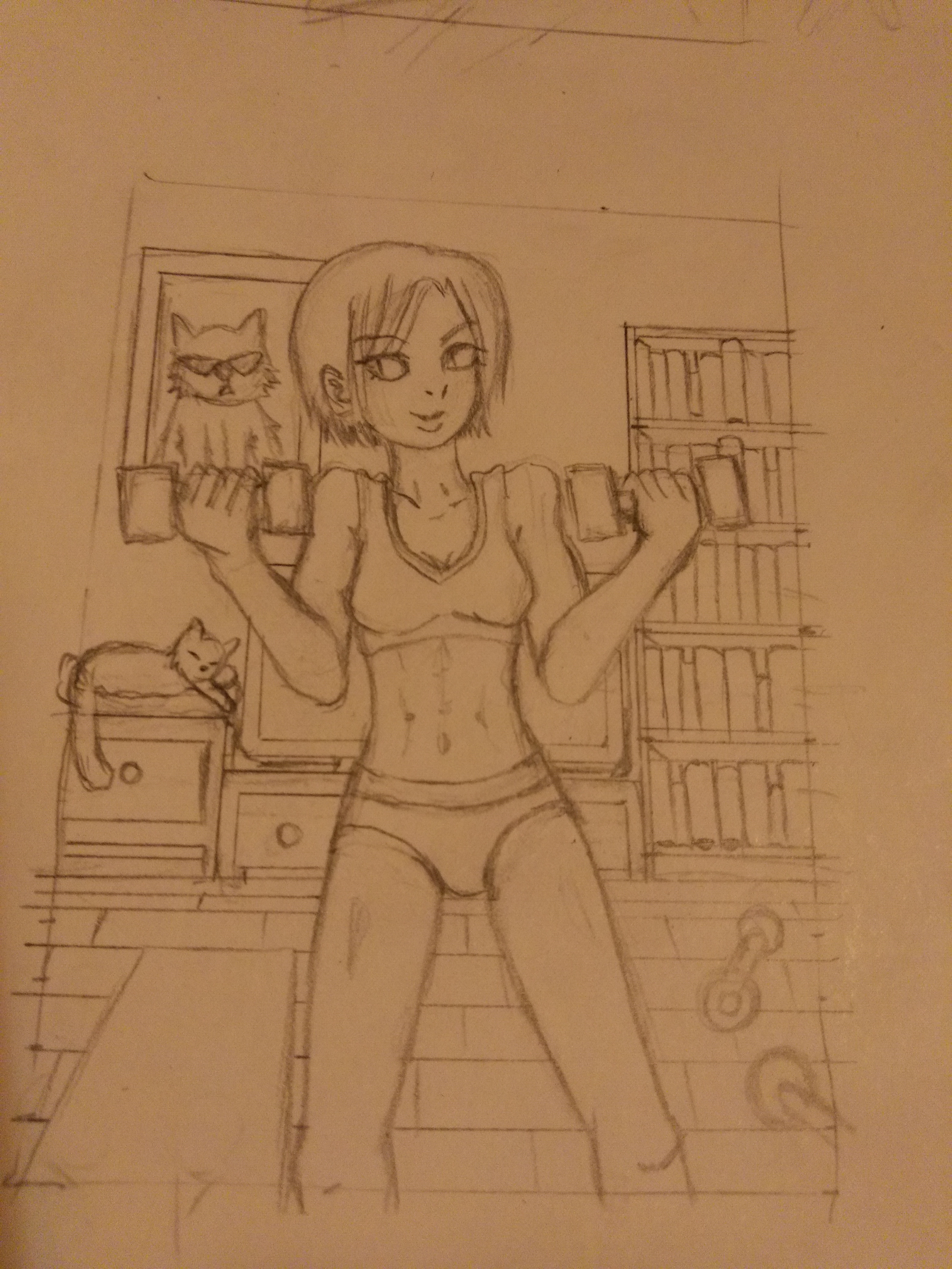 Bei dem ersten habe ich ein sehr niedliches Design Richtung Babydoll gewählt, mit Spitzen und Schleifen, das zweite stellt eine Frau in Sportunterwäsche dar, die zu Hause ihr Training absolviert und das dritte soll eine Alltagssituation darstellen, morgens nach dem Aufstehen, hierbei habe ich versucht eine etwas normalere bis leicht mollige Frau zu skizzieren. Das auf ihrem Dekolleté zeigt ein Sonnentattoo.