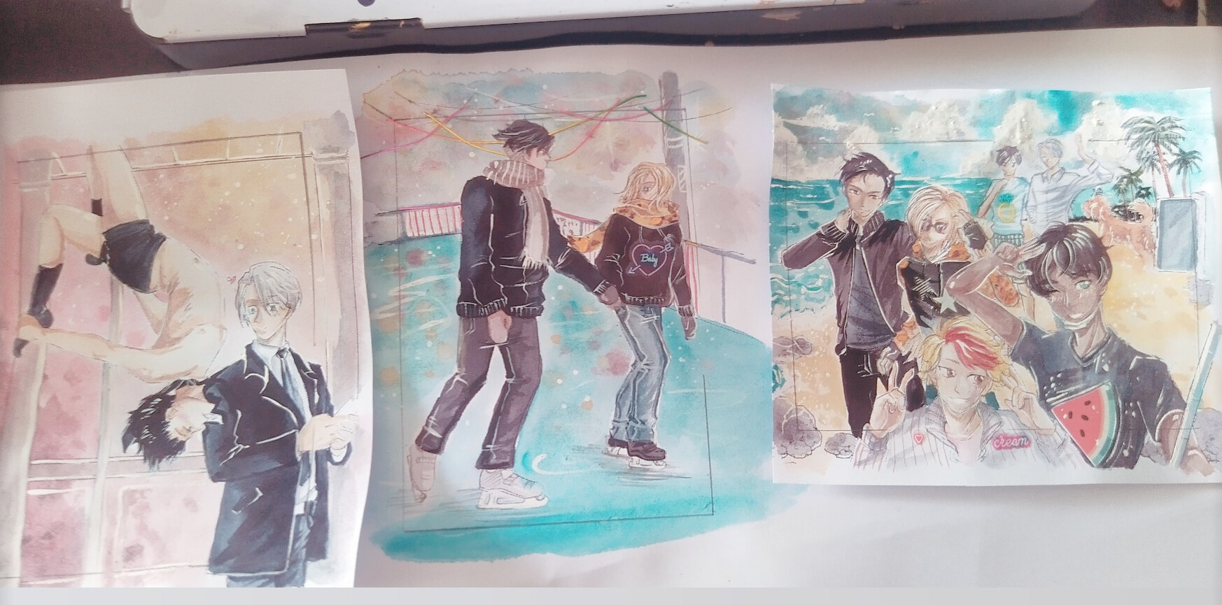 Für die dritte Karte bin ich noch am Überlegen, da ich gerne mal nicht Yuuri oder Victor zeichnen würde…