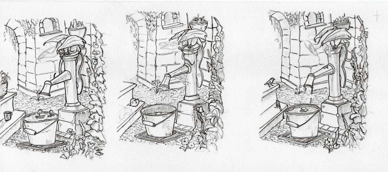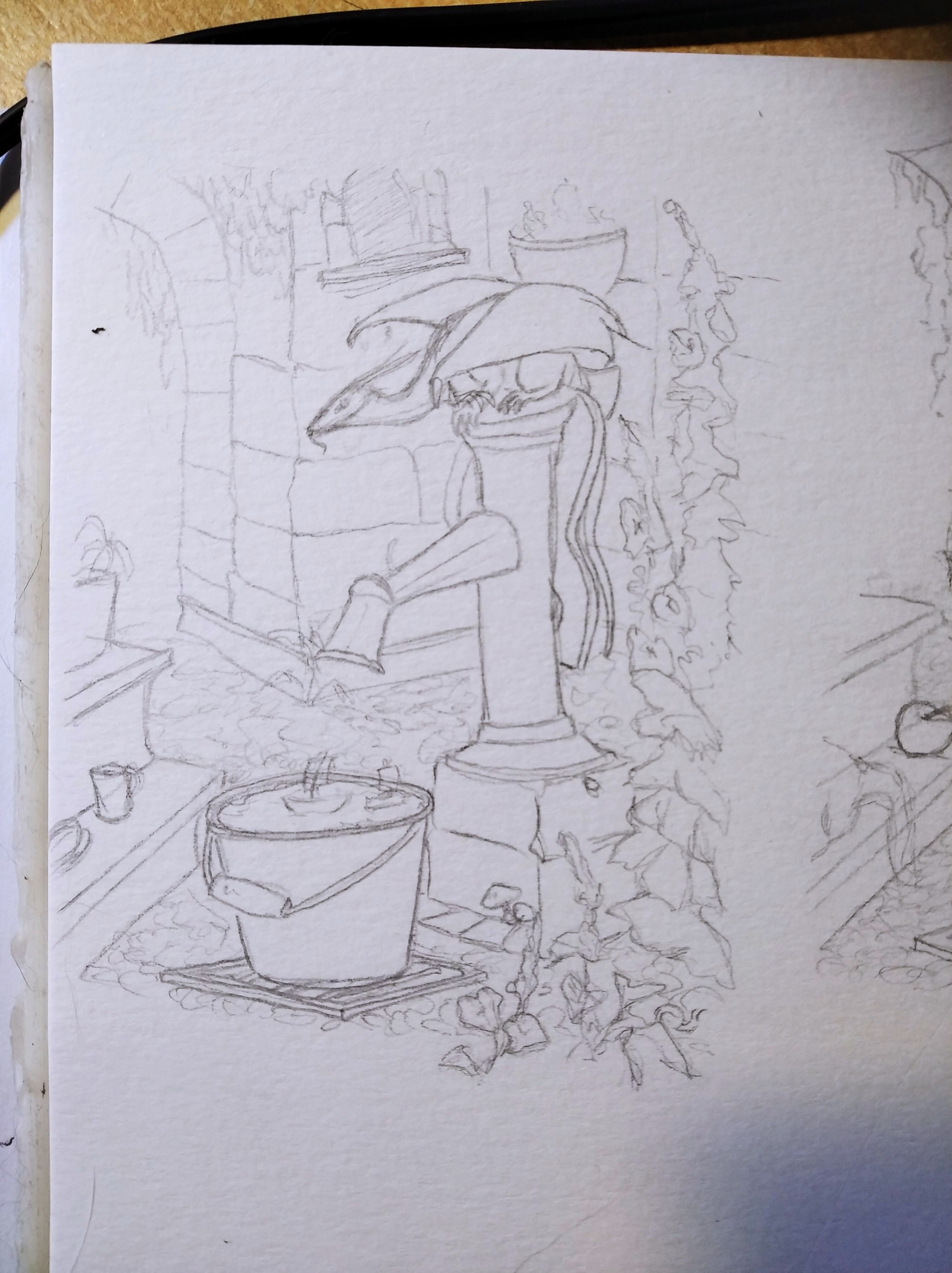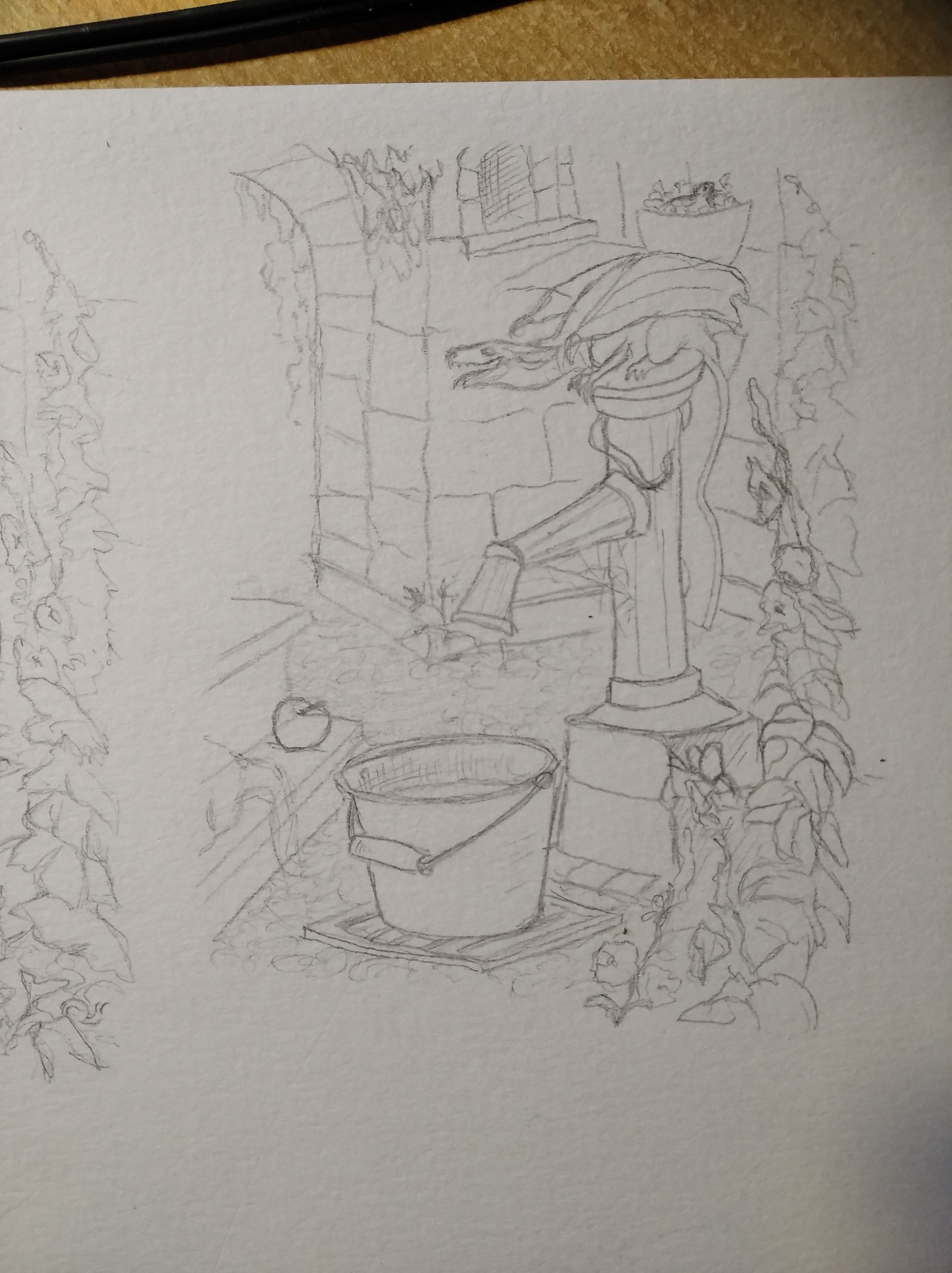Ich tendiere gerade zu der Variante “Drache auf Wasserpumpe mit Pflastersteinen”. Werde die Lines schonmal übertragen, um nach dem Aufstehen direkt weiter machen zu können.