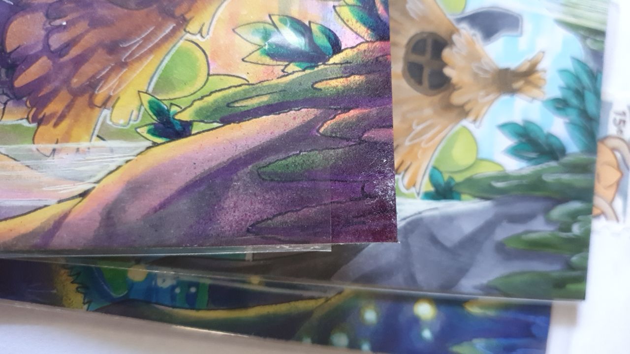 Noch eine Kleinigkeit, manche haben normalen Tesa genutzt um die KartenhĂŒllen zuzukleben. Hatte jetzt bei mehreren Karten, dass sie bis ans Tesa gerutscht sind. Bei einer Karte davon ist sogar ein bissl Farbe am Tesa hĂ€ngen geblieben. Sieht man zum GlĂŒck auf der Karte nicht, aber wĂŒrde den Betroffenen empfehlen die Karten entweder in zwei HĂŒllen zu stecken(eine von oben und eine von unten) oder anderweitig aufpassen, dass durch Wackeln des Briefes die Bilder nicht an aggressiven Kleber kommen. Washi geht im Vergleich wesentlich leichter vom Motiv ab, wenn was passiert. :)