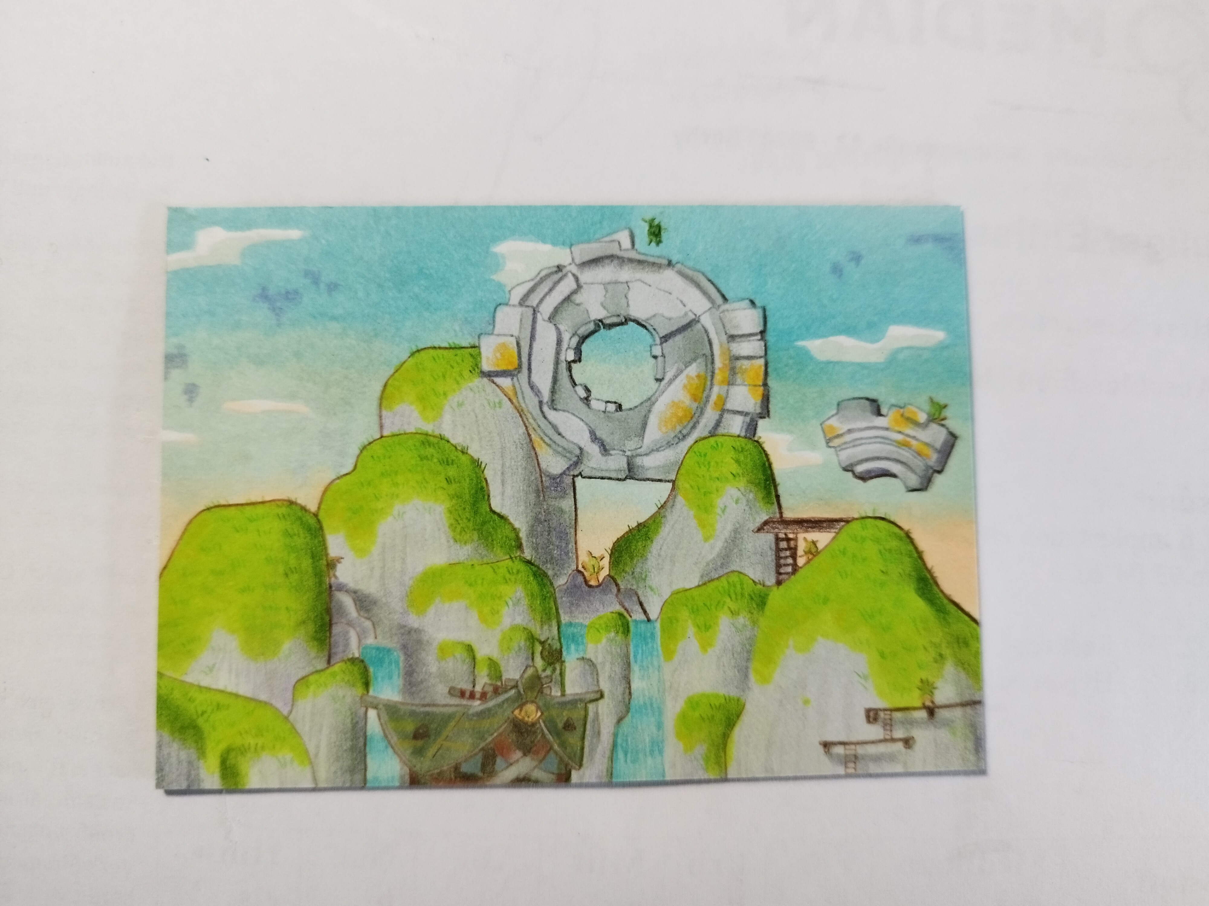 Tatsächlich gibt es zwei, einen über Impas Haus und einen auf der Spitze der Ruinen. Die habe ich prompt mit eingebaut, fand sie zu ultra cute, und hab ein kleines Suchbild aus der Karte gemacht xD Insgesamt haben sich sieben Krogs im Bild versteckt, alle seeehr sehr klein. Ich konnte sie leider nicht alle maßgerecht darstellen, weil ich sonst nur Punkte hätte malen können xD