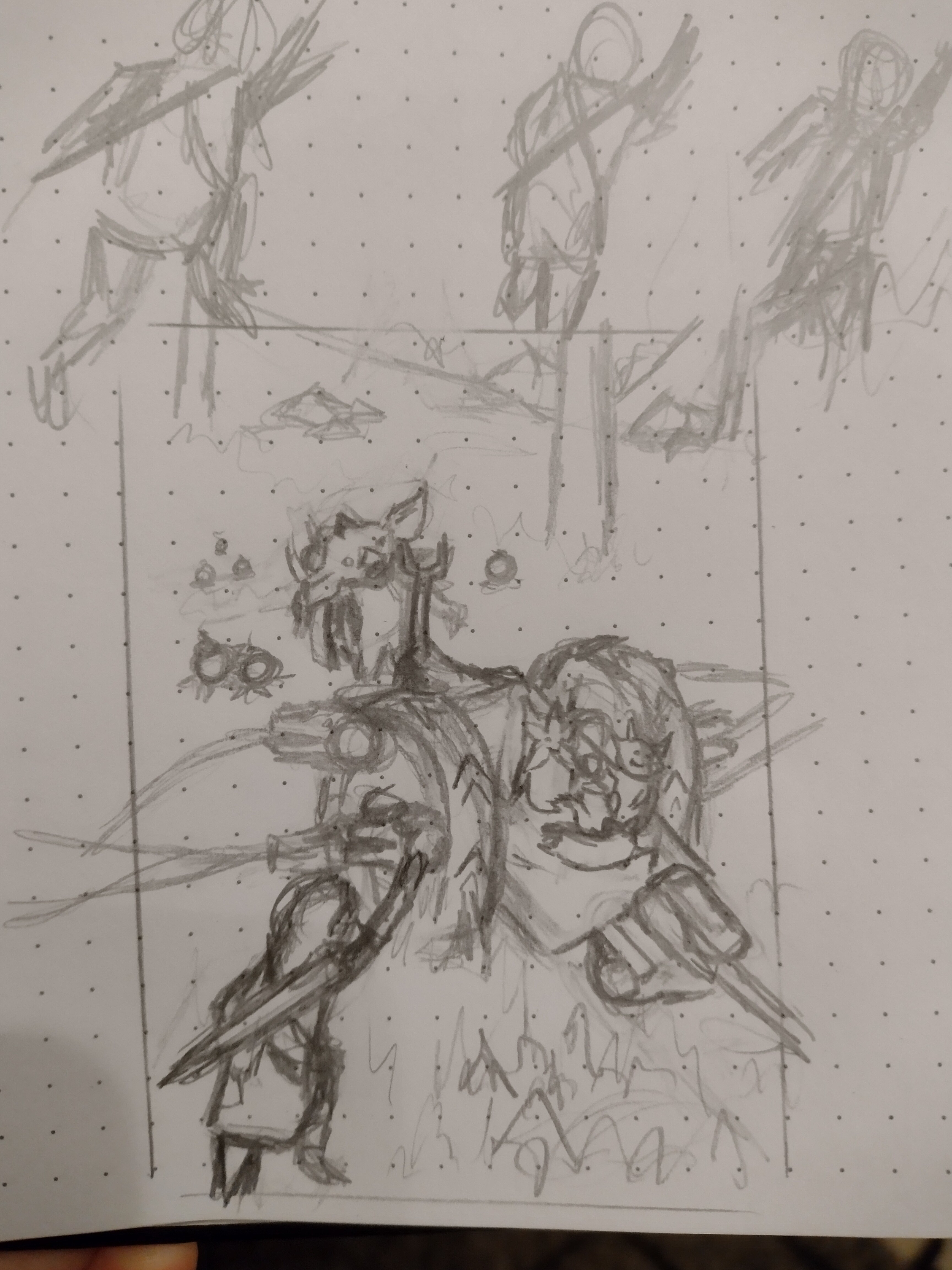 Mein Bild wird aber deutlich einfacher (ich will da ja auch fröhliche Krogs drauf setzen). Die Vorlage ist eher fĂŒrs Feuer da. Man sieht noch nicht super viel, aber bei Interesse ist hier die aktuelle Skizze: