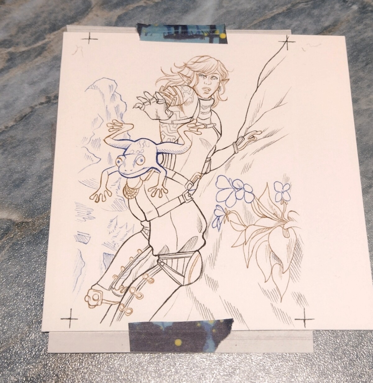 Ja definitiv! Bei der Sonia Zelda Karte hab ich erstmal nur die groben FarbflĂ€chen fertig. Es fehlen noch Schatten, Details und eventuell neue Lines, und da kommen definitv noch ein paar BlĂŒmchen und ein Konstrukt in den Hintergrund!