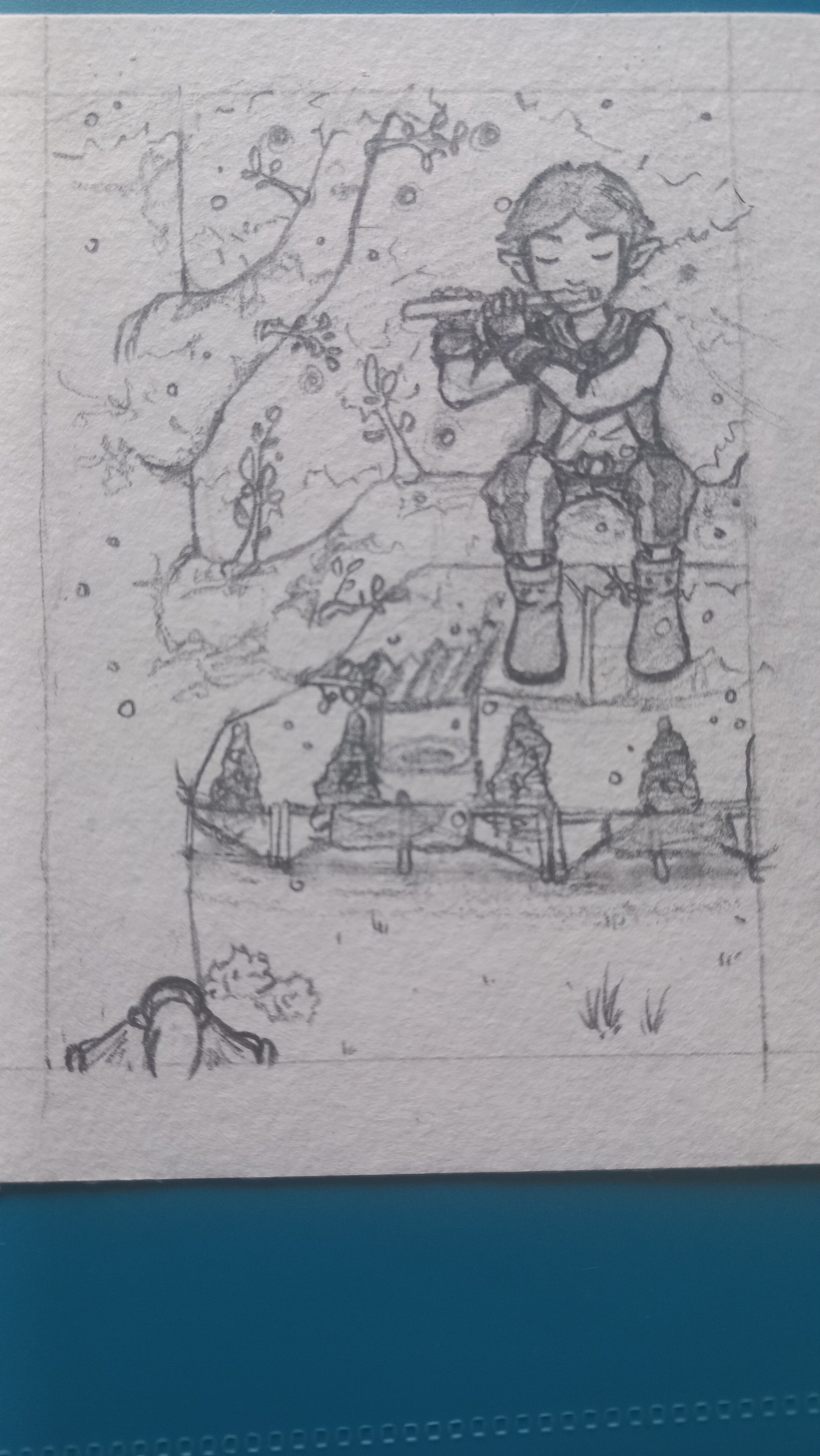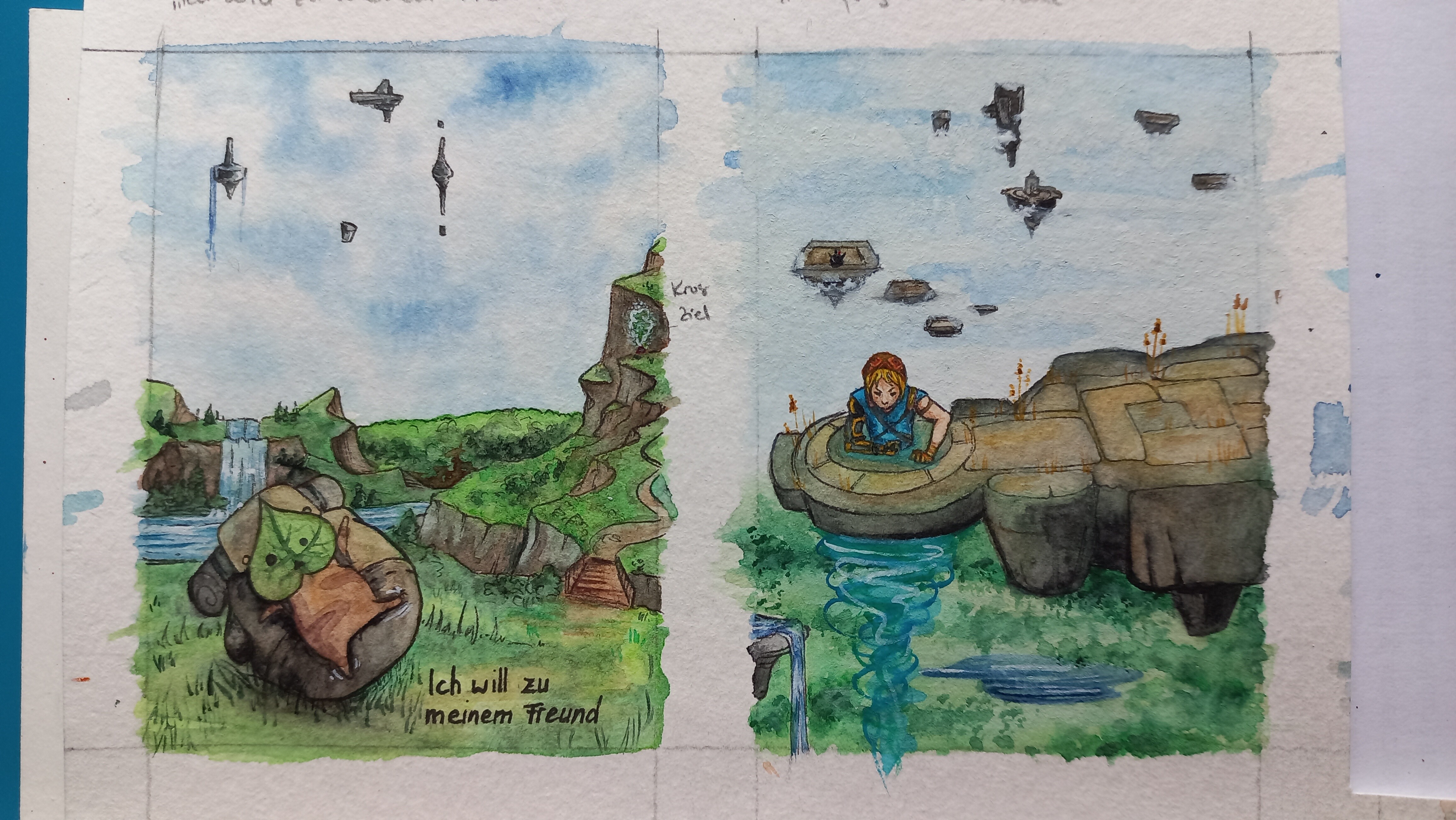 FĂŒr die dritte Karte will ich den Dumsda Schildmenschen malen und wie Link versucht das RĂ€tsel zu lösen.