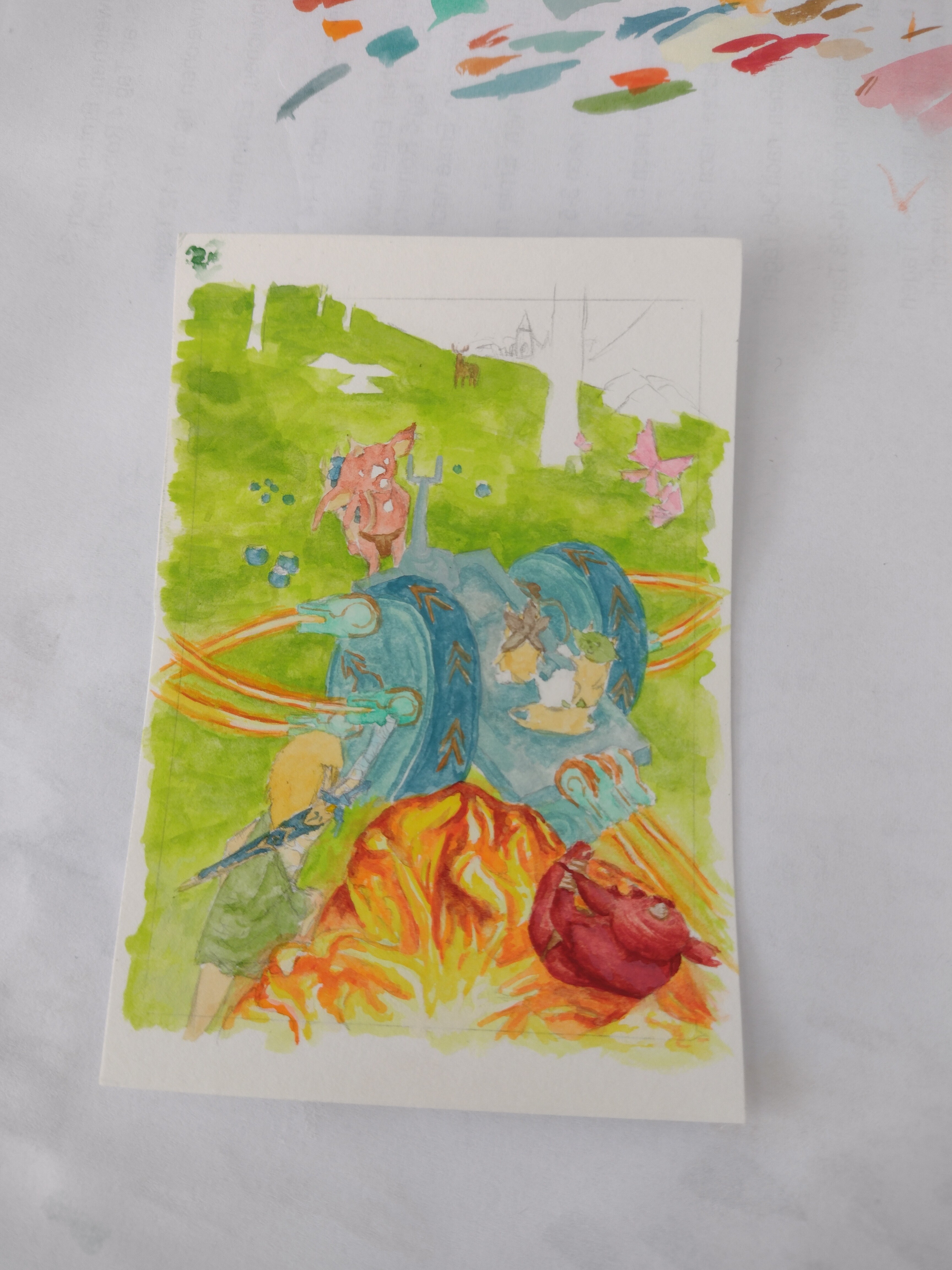 Ich hatte ihn damals in ähnlicher Szene (nur nicht mit einem so schönen Hintergrund) in meinem Linktober gemalt, weil ich diesen Charakter so süß fand und im Spiel ein ganz großer Fan von ihm war.