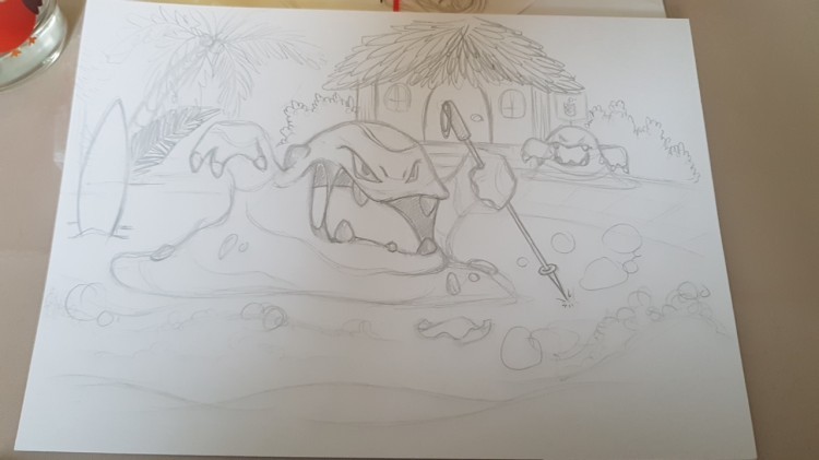 Hier auch mal ein Foto meiner drei Skizzen. Ich bin beim Sleima am überlegen, ob ich noch mehr Müll hinzufüge, über dass es sich freut oder ob ich lieber das schöne Strand-Feeling beibehalte. Könnt auch gerne mal schreiben, was ihr dazu denkt ^^