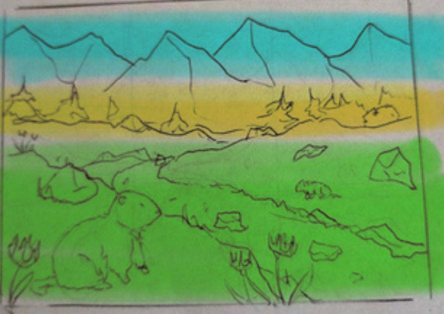 Mir fällt gerade noch auf, dass du sogar die Murmeltiere anders anordnen könntest indem du das zweite Murmeltier nach vorne zum ersten ziehst und die beiden miteinander agieren lässt.
