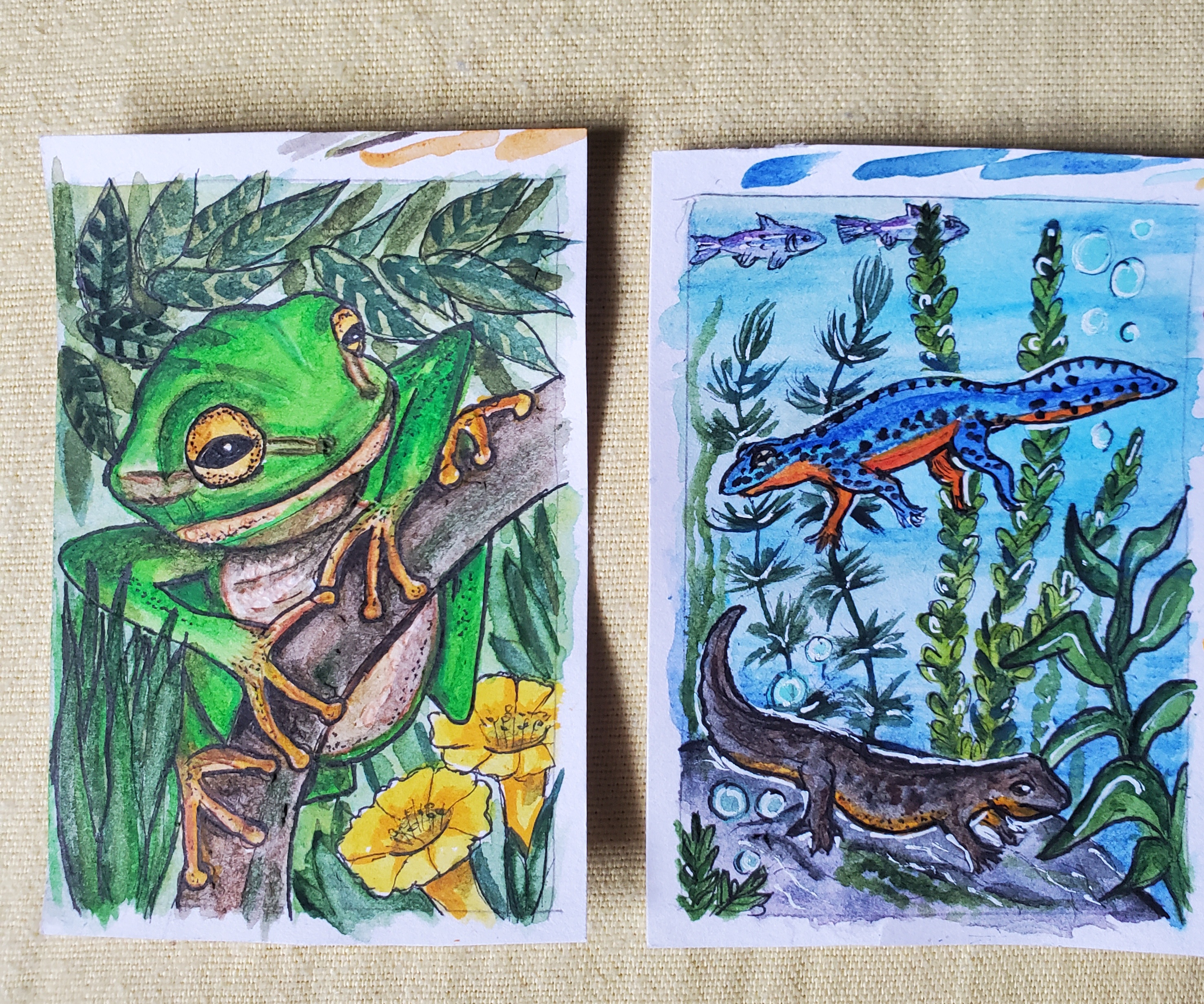 So. Bin nochmal an die Karten ran gegangen. Ich hoffe, ich hab sie jetzt nicht versuboptimiert (also hauptsächlich die Unke. Der Molch gefällt mir so ziemlich gut).