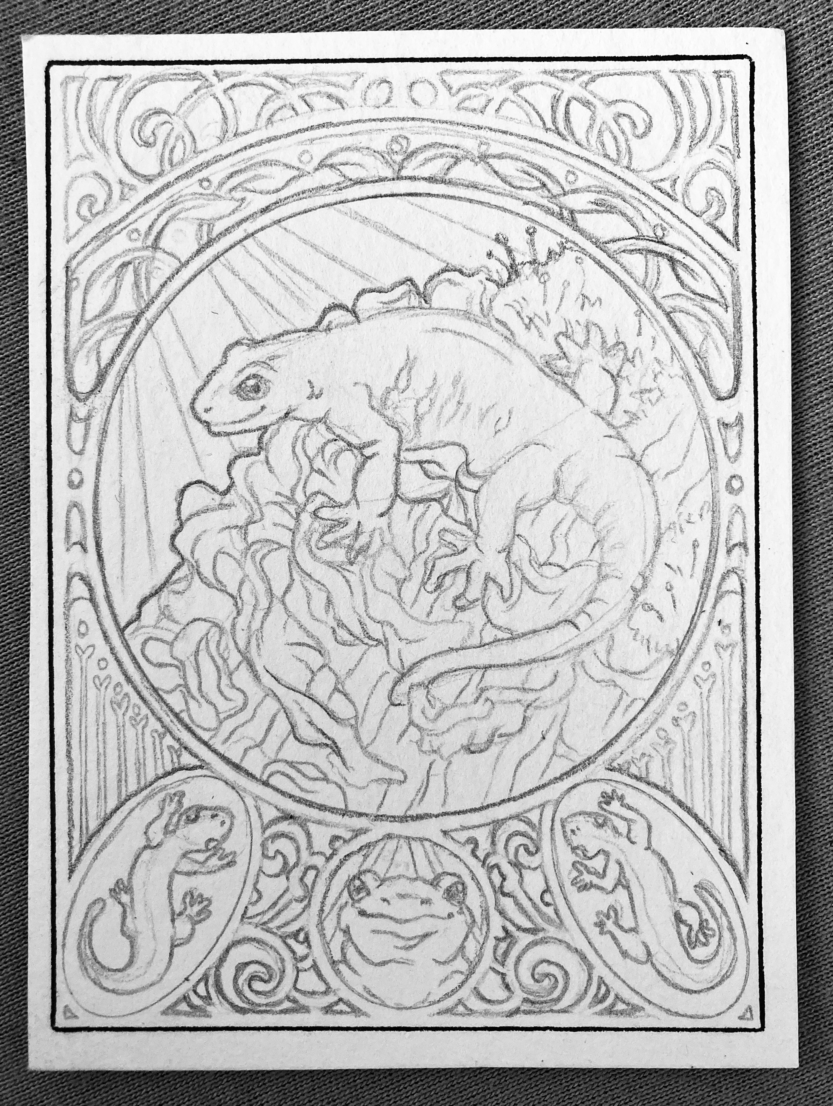 wollte euch mal meine erste skizze zeigen, hier kommt mein jugendstil feuersalamander