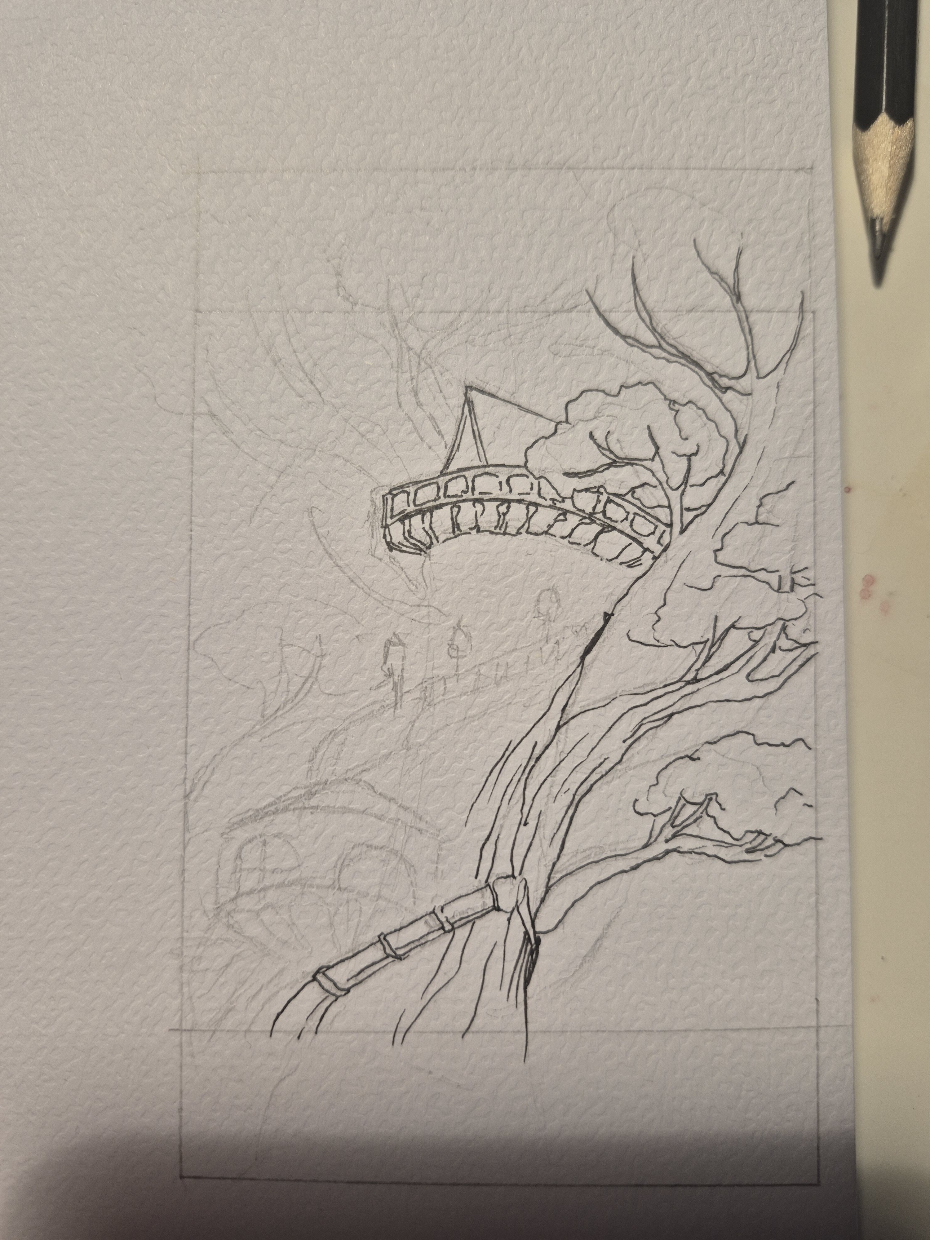 So, ich hab mich heute auch nochmal hingesetzt und die Skizze für die zweite Karte gemacht. Ich fand es so toll, dass Rio aus der TFT Welt in die Serie geschafft hat