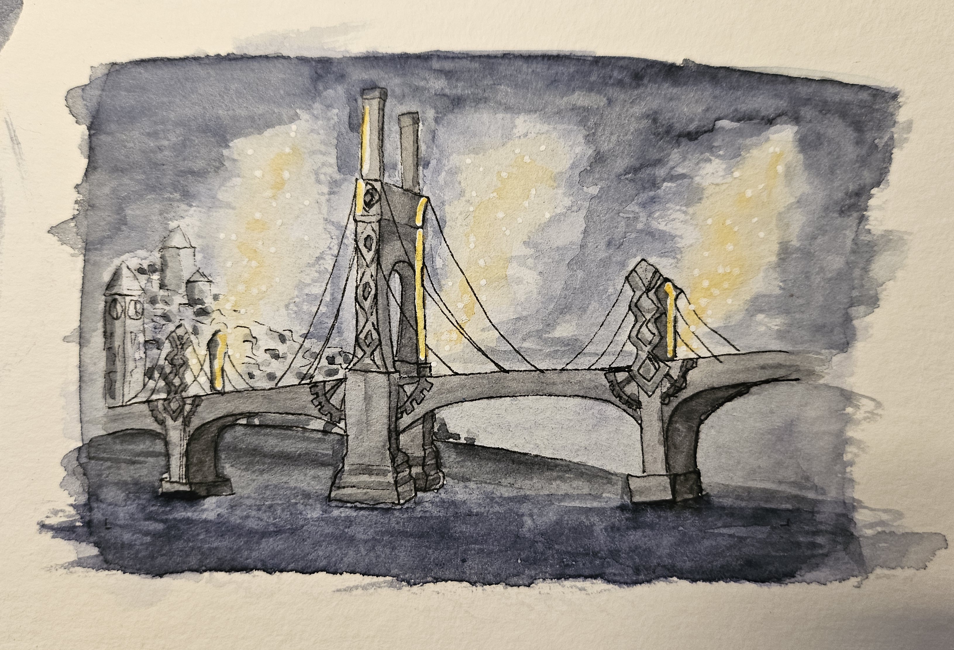 Hier auch mal mein Fortschritt für die 2te Karte, hatte überlegt es ein wenig mehr monochrom und stilistich simpel zu halten, mit den Lichtern im Fokus.