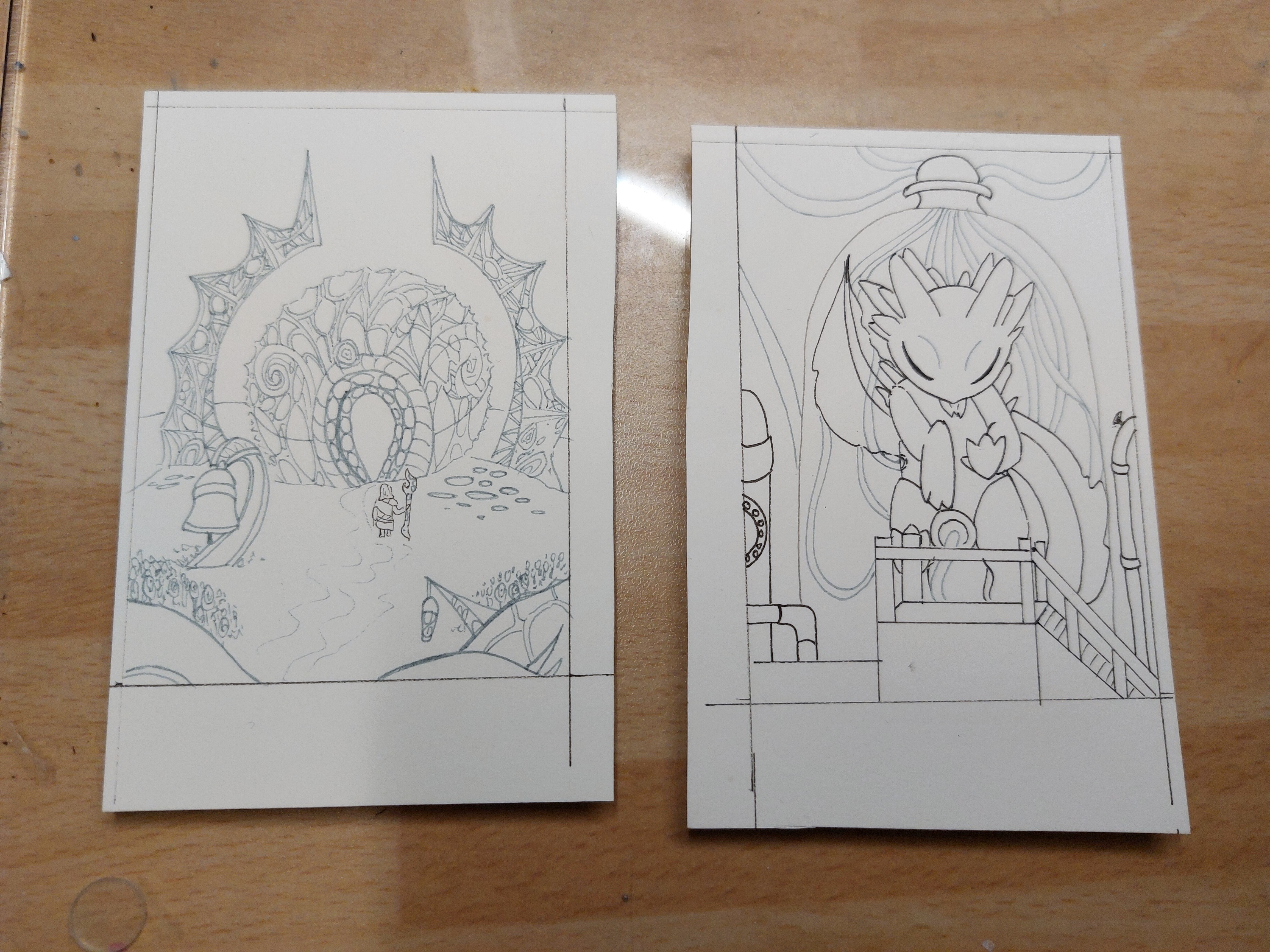 Kleines Update auch von mir. 2 Karten wären soweit fertig und müssen nur noch zugeschnitten werden.
