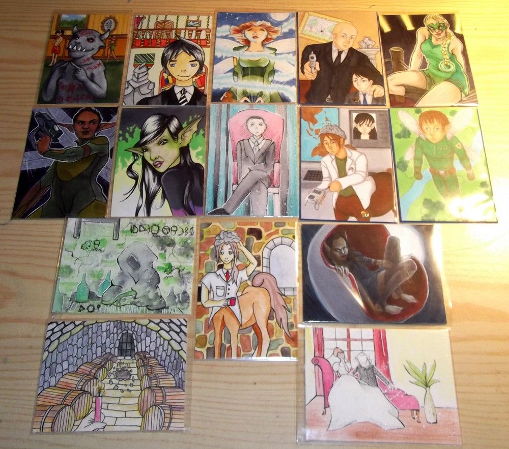 Und hier sind die gesammelten Geschenke von euch - die beiden zauberhaften Karten links sind die Extrakarten für mich :3 und rechts sind die tollen Auflagen vom Untier. :)