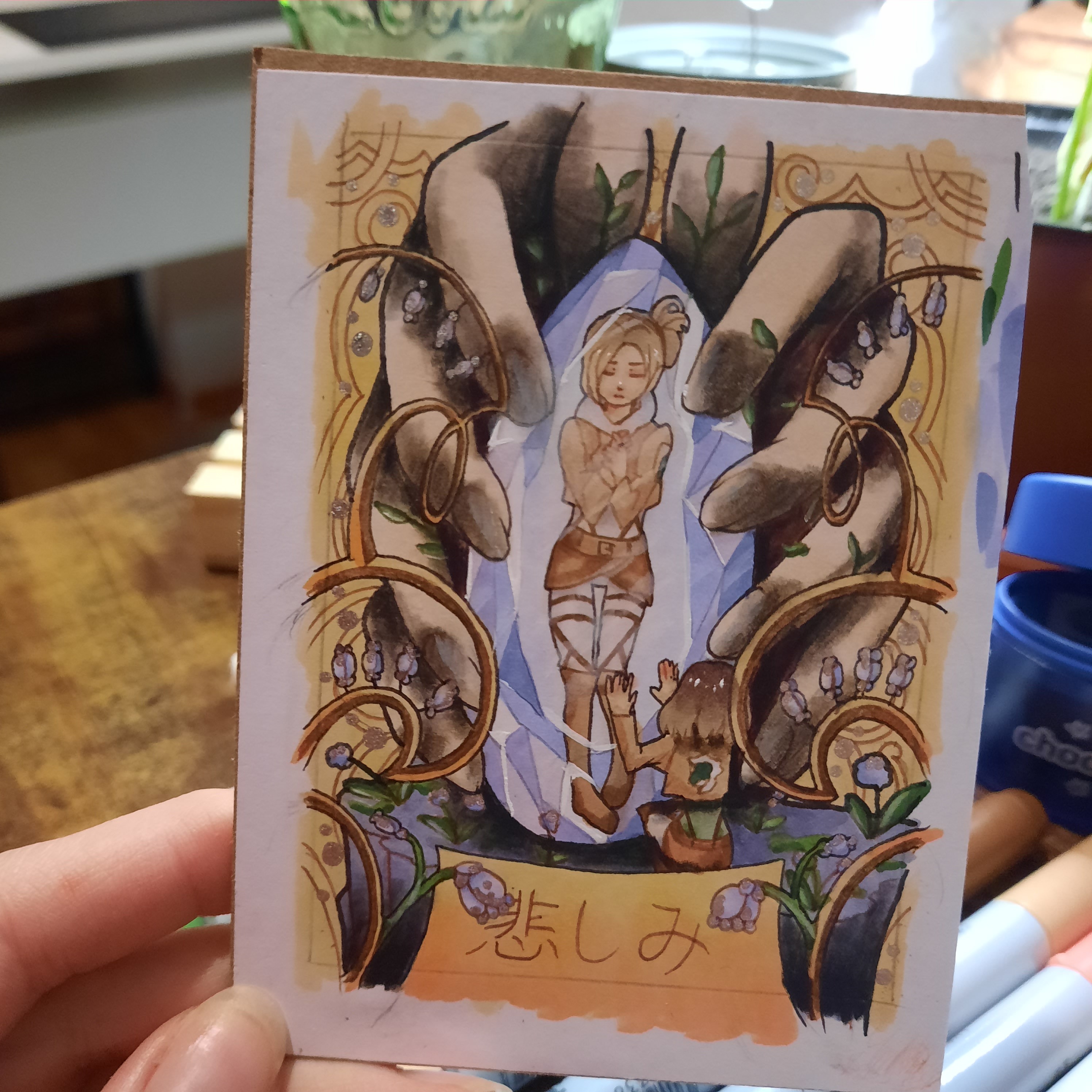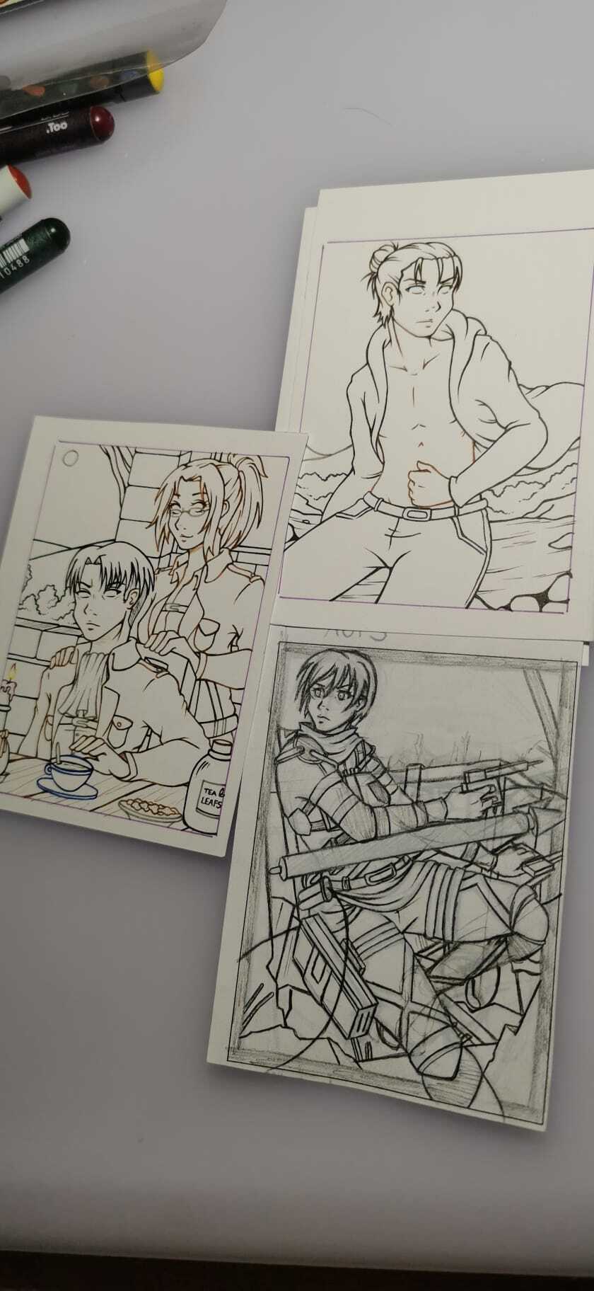 Die Mikasa wird jetzt auch noch gelinet. Aber das wären so meine Motive. Beim Eren habe ich mich an einen Screenshot gehalten, weswegen die große Fläche ein (hoffentlich!) pompöser und atmosphärischer Himmel wird! :D