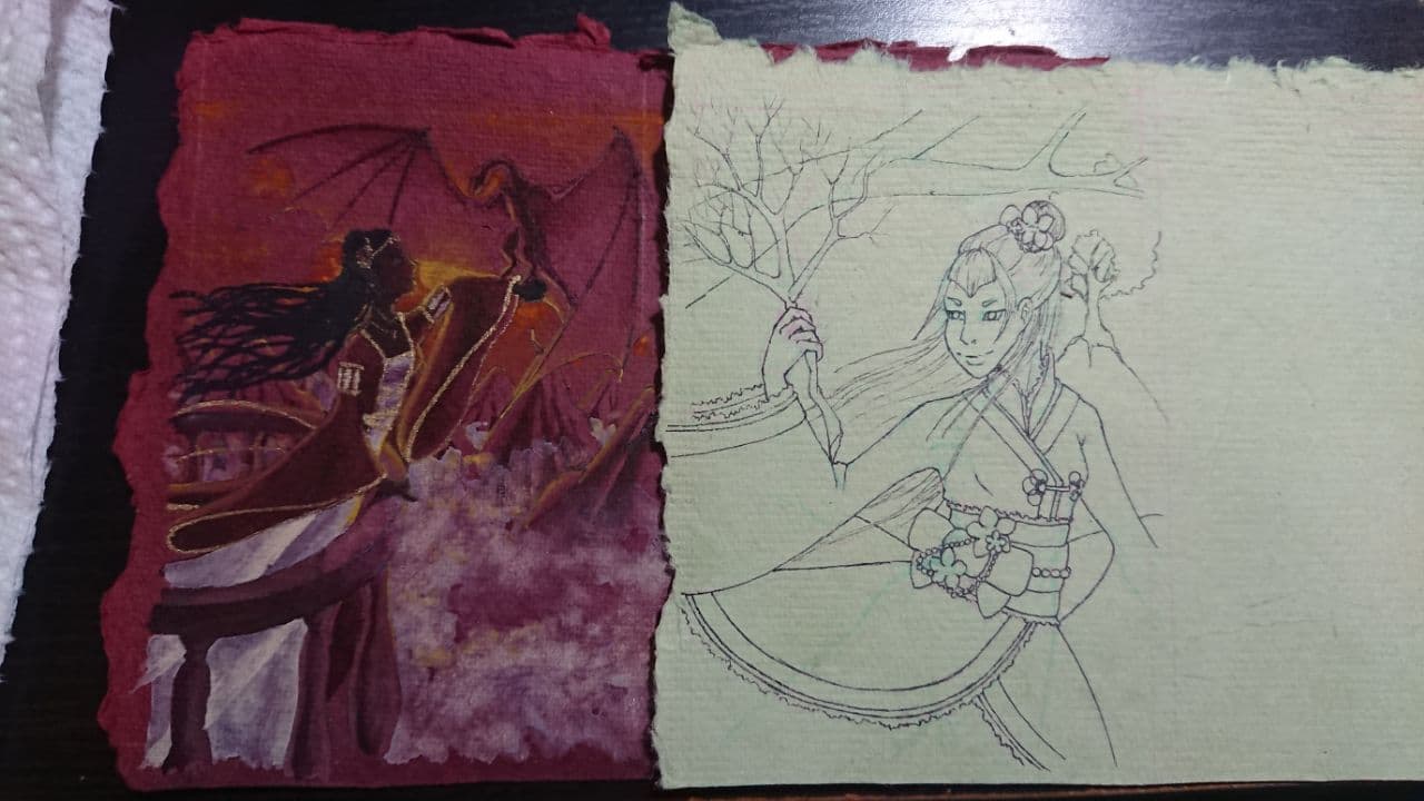 Ich vermute, das ist dasselbe Papier, mit dem auch Yasao gekämpft hat? Es ist nämlich echt eine Katastrophe, es saugt so brutal und sanfte Übergänge sind kaum möglich x’D Ich werde wahrscheinlich am Ende noch mit Buntstift etwas nachbearbeiten müssen um halbwegs hübsche Kanten und Übergänge zu bekommen…