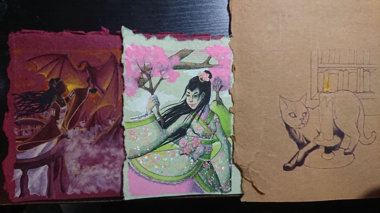 Die linke Karte wäre soweit fertig, die rechte wird selbstverständlich noch angemalt. Für das dritte Motiv habe ich zwar schon eine Idee, bin mir aber noch nicht sicher, ob die mich nicht zur Verzweiflung treiben wird x’D