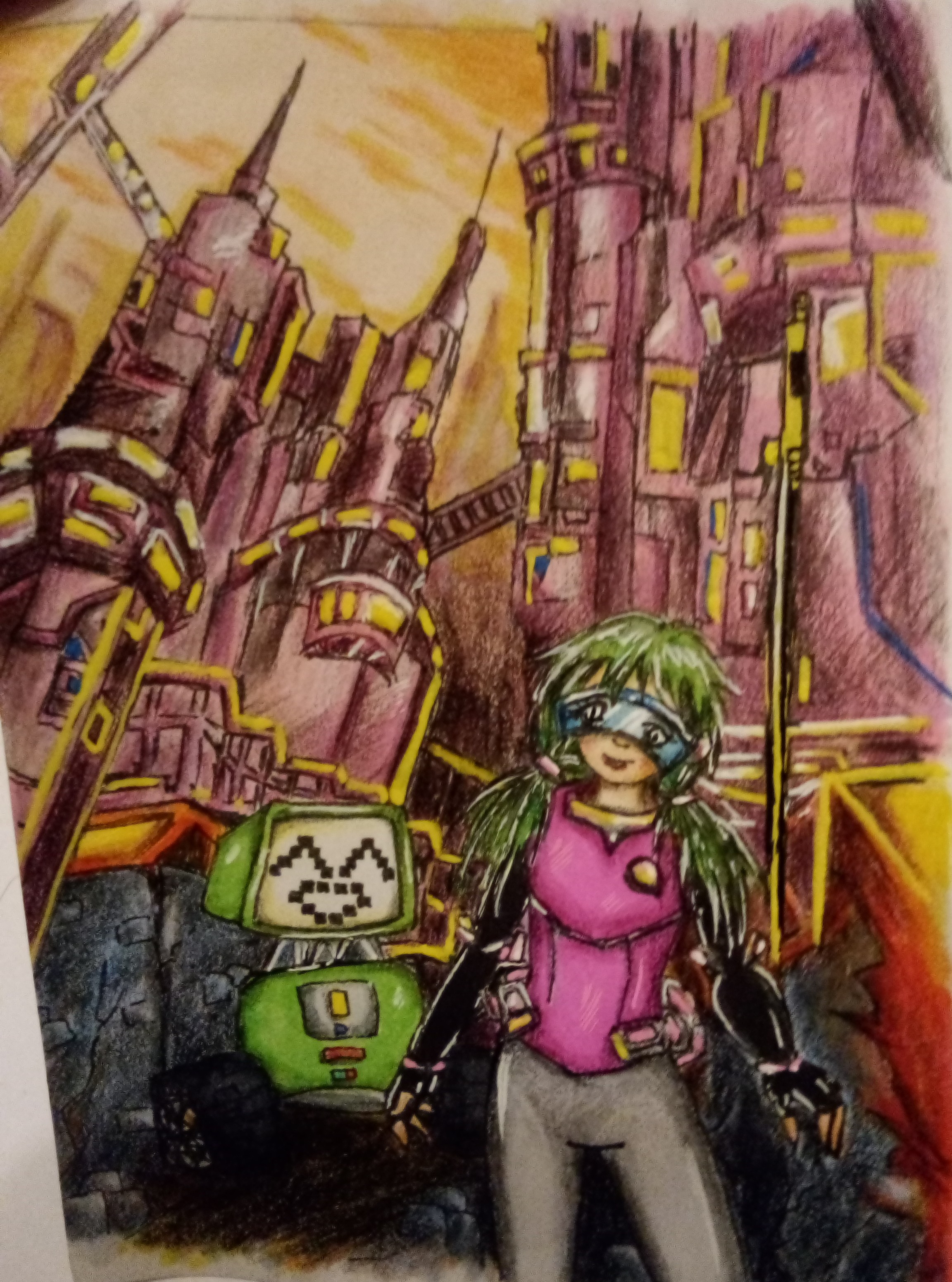 Natürlich könnte man im Hintergrund auch einfach ein futuristisches Appartement mit Cyberpunk Charakter (Aussicht auf Hochhaussiedlung) zeichnen. Das wären jetzt Ideen die bei mir im Kopf rumschwirren :)