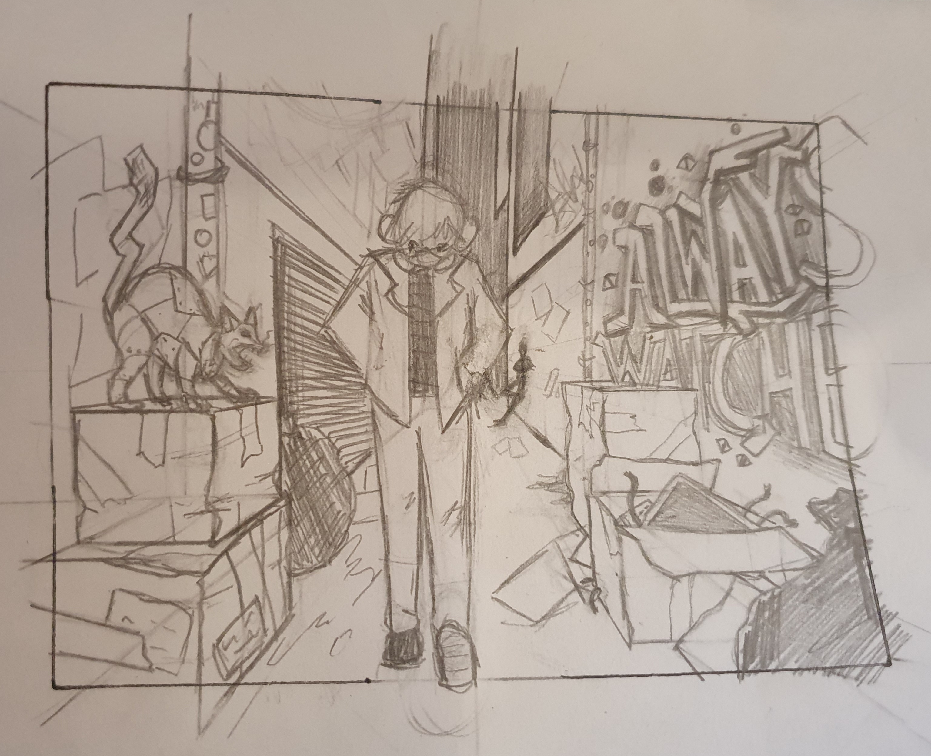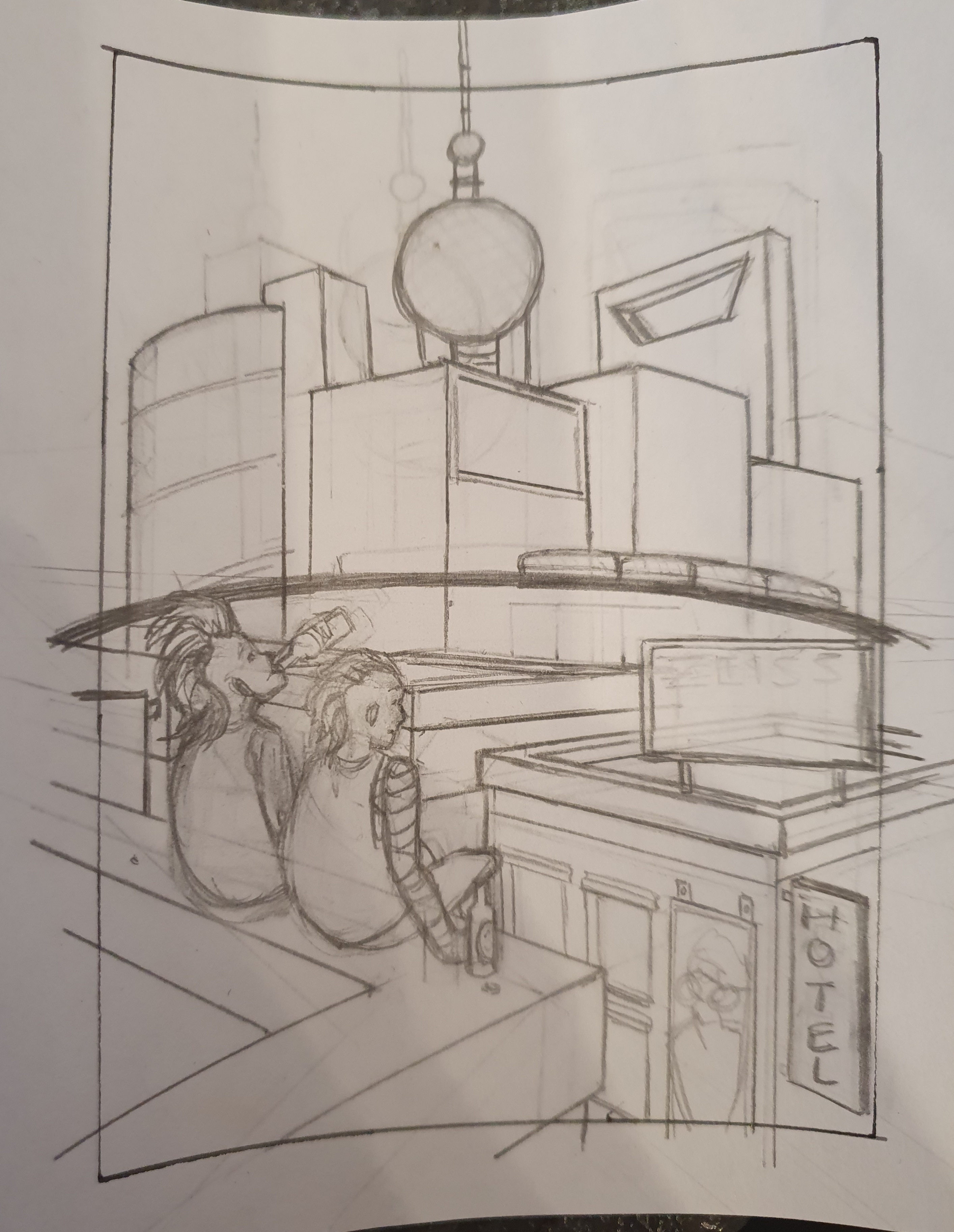 Bei der ersten und dritten Skizze habe ich mich von China inspirieren lassen (Shanghai Skyline und U-Bahn-Station in Peking), die zweite Skizze hatte keine bestimmte Inspiration/Referenz~