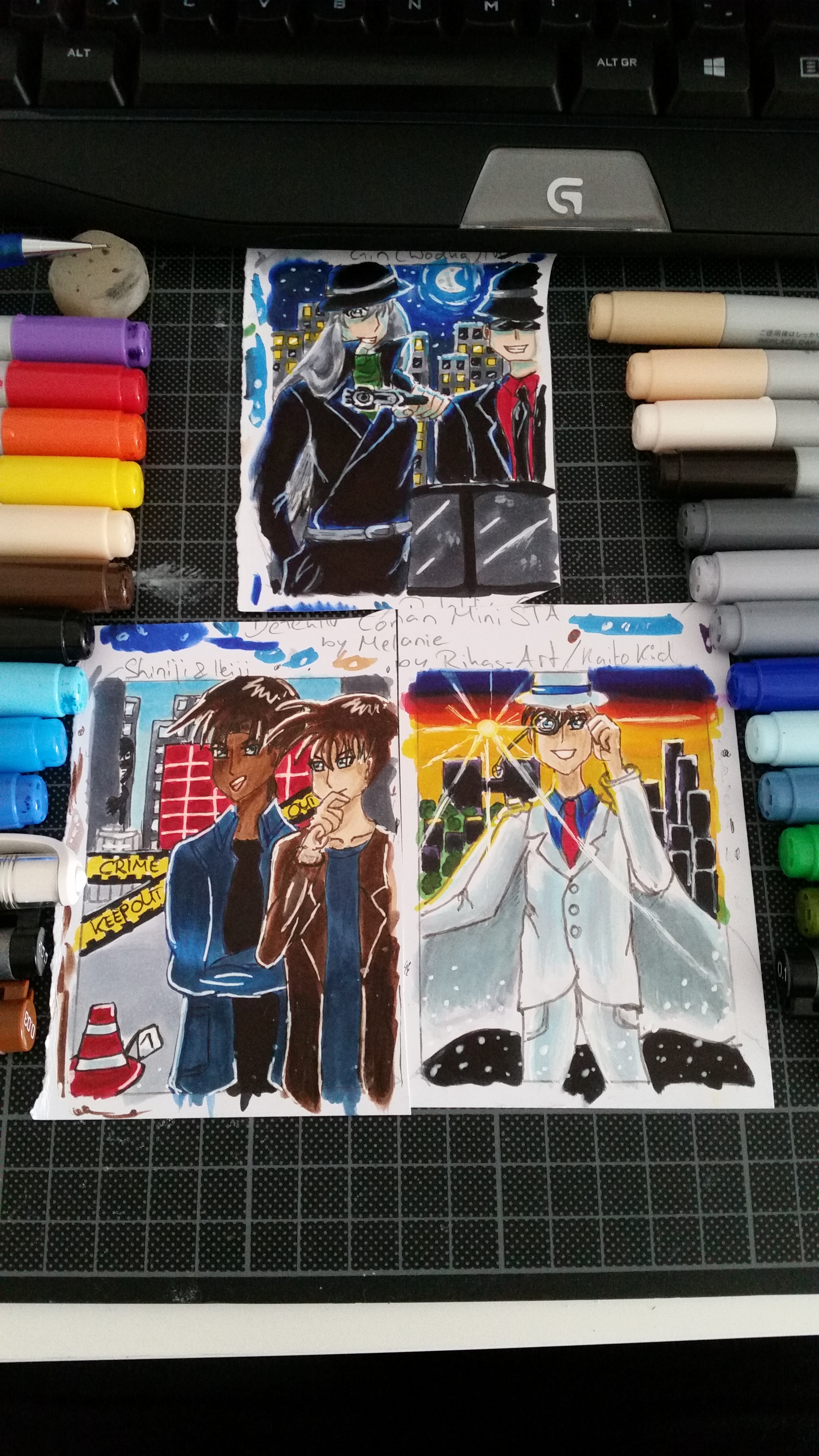 Und was die Karte von @Chibi_Shinichi angeht: Ich finde mal beide Karten süss geworden. Ich stelle mir das so vor, dass Conan irgendwas gemacht hat (er wird ja eh als Held bezeichnet XD) was die beiden Mädels beeindruckt hat und daher bedanken sie sich mit einem kleinen bussi auf die Wange XD. @art_of_marie Klar ist man es sich von Ai nicht gewöhnt, aber auch sie kann mal nett sein >.<.