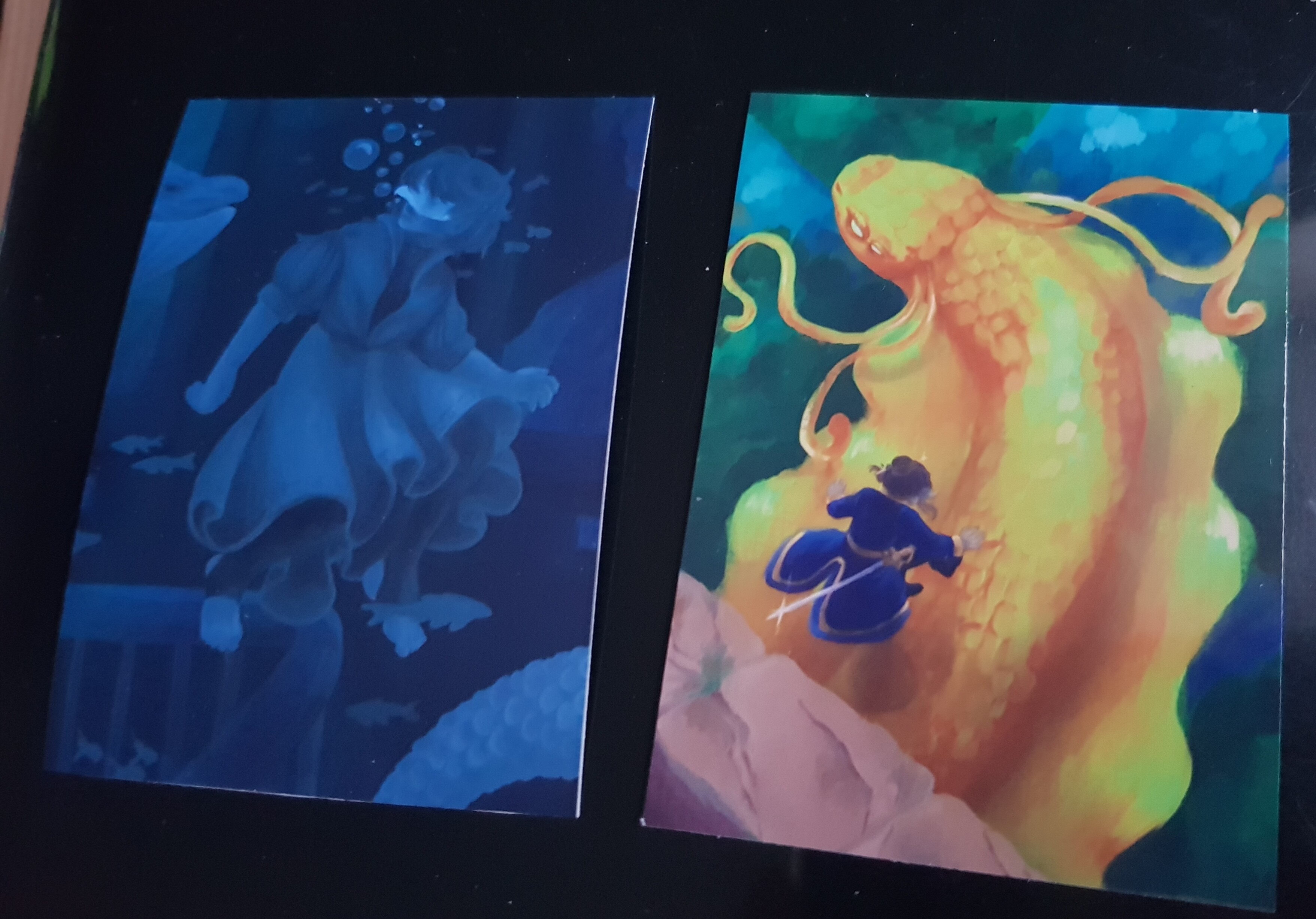 (Schlechtes Licht :'D) Die monochrome Karte hat leider ein bisschen Kontrast beim Druck verloren, es geht aber noch (finde ich) ^^"