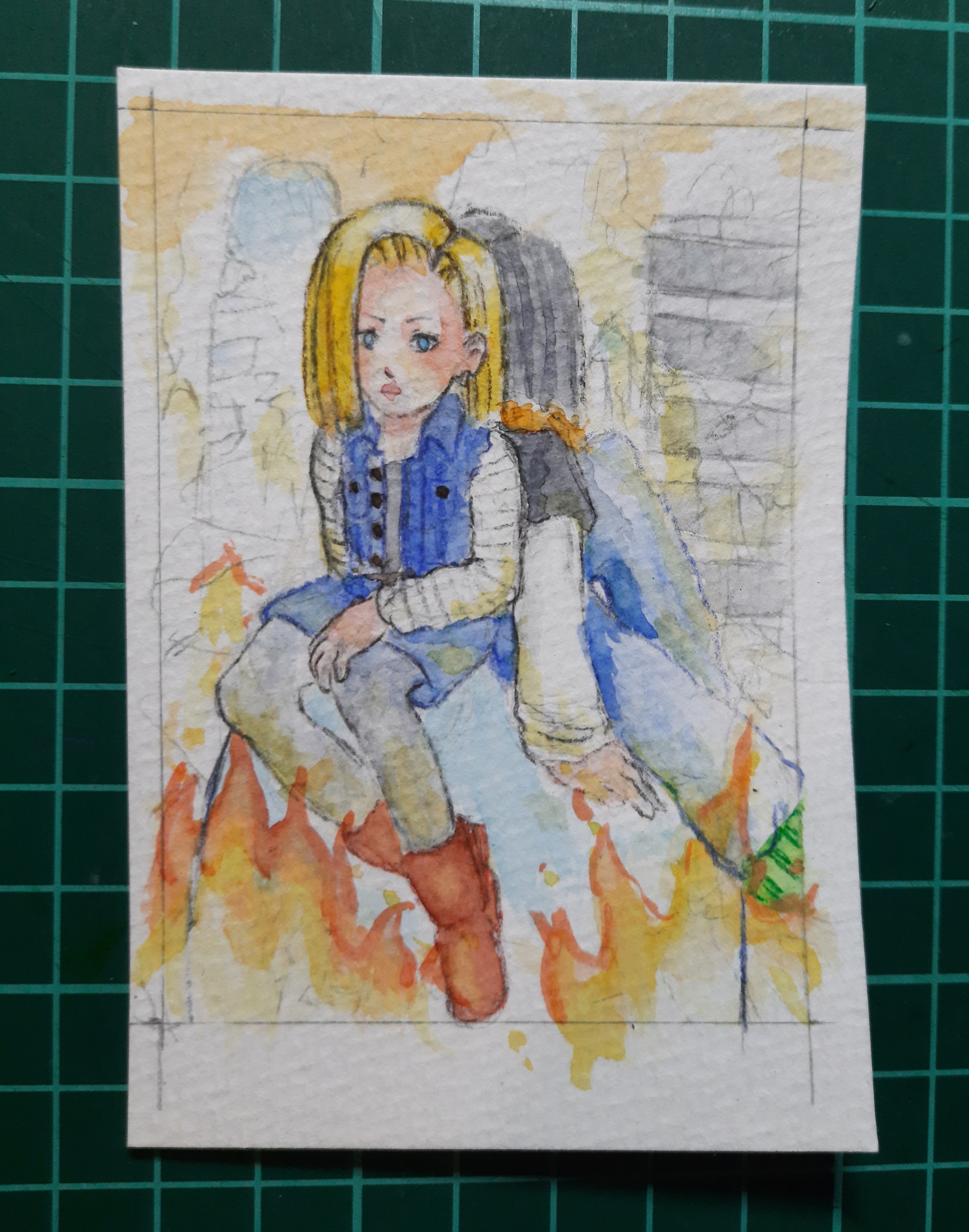 Bei bulma und yamcha warte ich noch bis es trocknet und muss mal gucken was für eine schöne Strucktur ich finde, damit der Hintergrund mehr Dynamik bekommt… Hätte gerne etwas was mehr an rasterfolie erinnert.