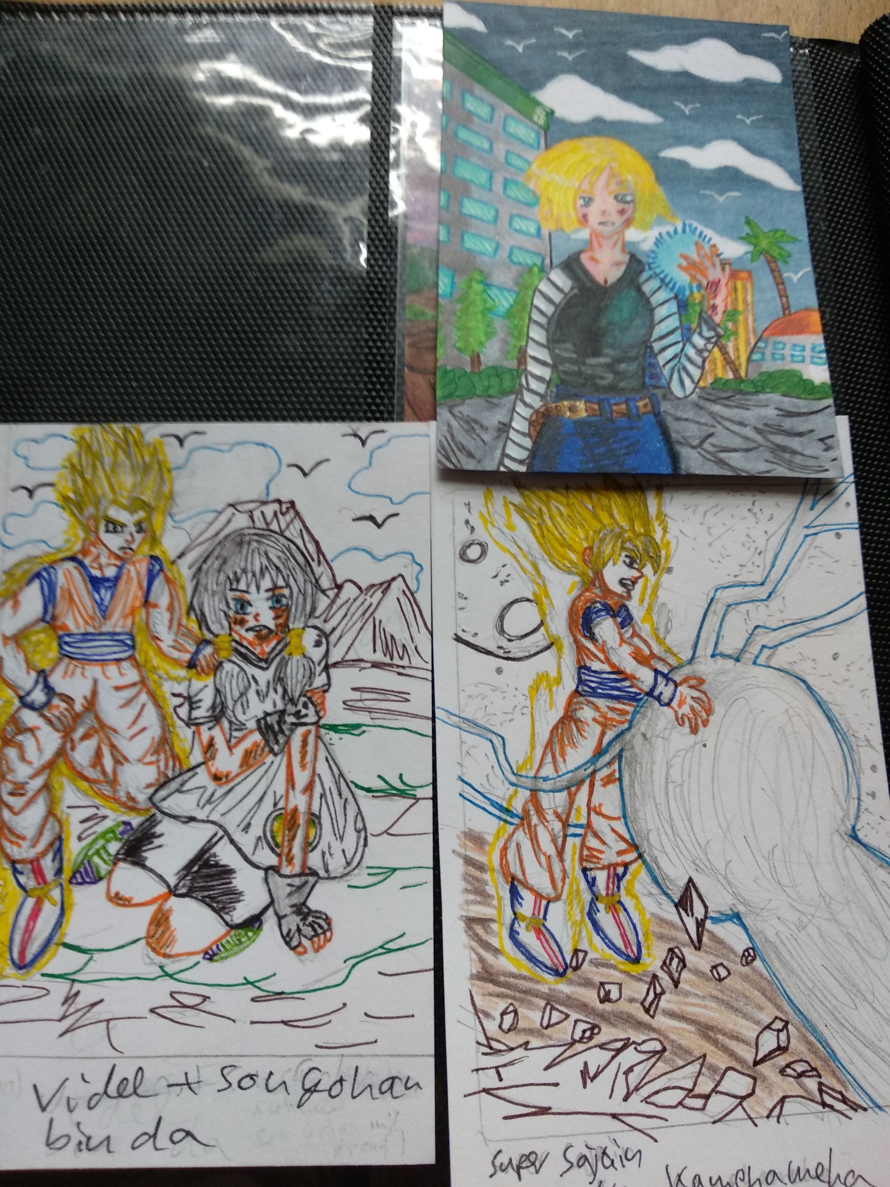 @Masshiro_No_Uchiha: zu welcher der beiden Skizzen tendierst du denn eher? Die Videl-Karte hat es von der Perspektive her ja ganz schön in sich. Ich musste ehrlichgesagt auch erstmal schauen, wer da wo ist. Das Größenverhältnis zwischen Videl und Gohan ist etwas off. Son-Gohan ist ja direkt hintern/neben ihr, aber hat so viel kleinere Proportionen. Ich finde das Motiv wirklich toll, würde aber wirklich empfehlen, die Charaktere Größer darzustellen. Du bist nicht verpflichtet, immer einen mords Hintergrund zu zeichnen, man darf den Fokus ruhig auch auf die Charaktere legen. Das würde dem Motiv sicher gut tun. Jedoch bist du der Künstler und entscheidest, in welchem Stil du deine Karten gestalten möchtest. Insofern wären beide Skizzen zugelassen. Kannst ja mal die anderen fragen, welches Motiv sie spannender finden, falls du dich nicht entscheiden kannst :) die C18-Karte hat eine tolle Farbstimmung bekommen, das passt sehr gut zu der ganzen Cyborg-Staffel. Auf jeden Fall zugelassen!