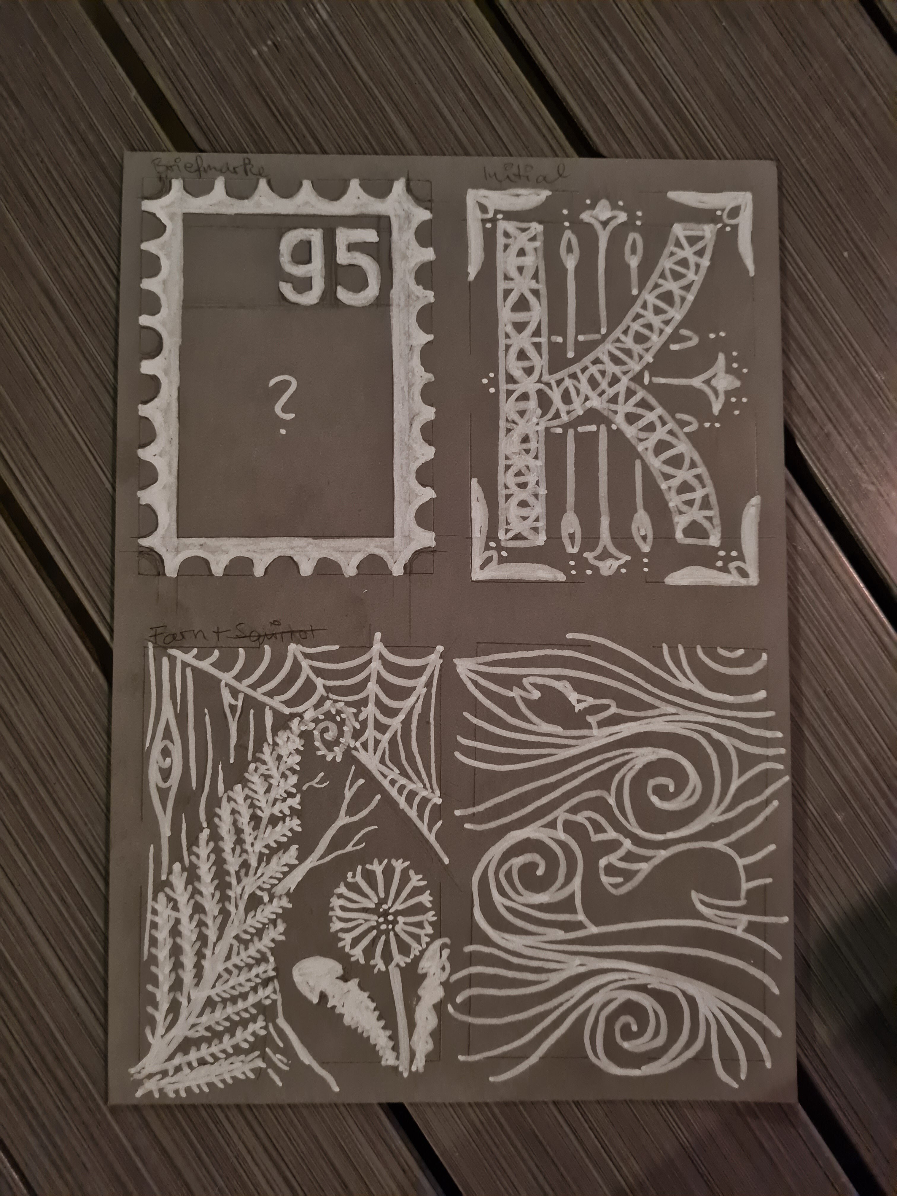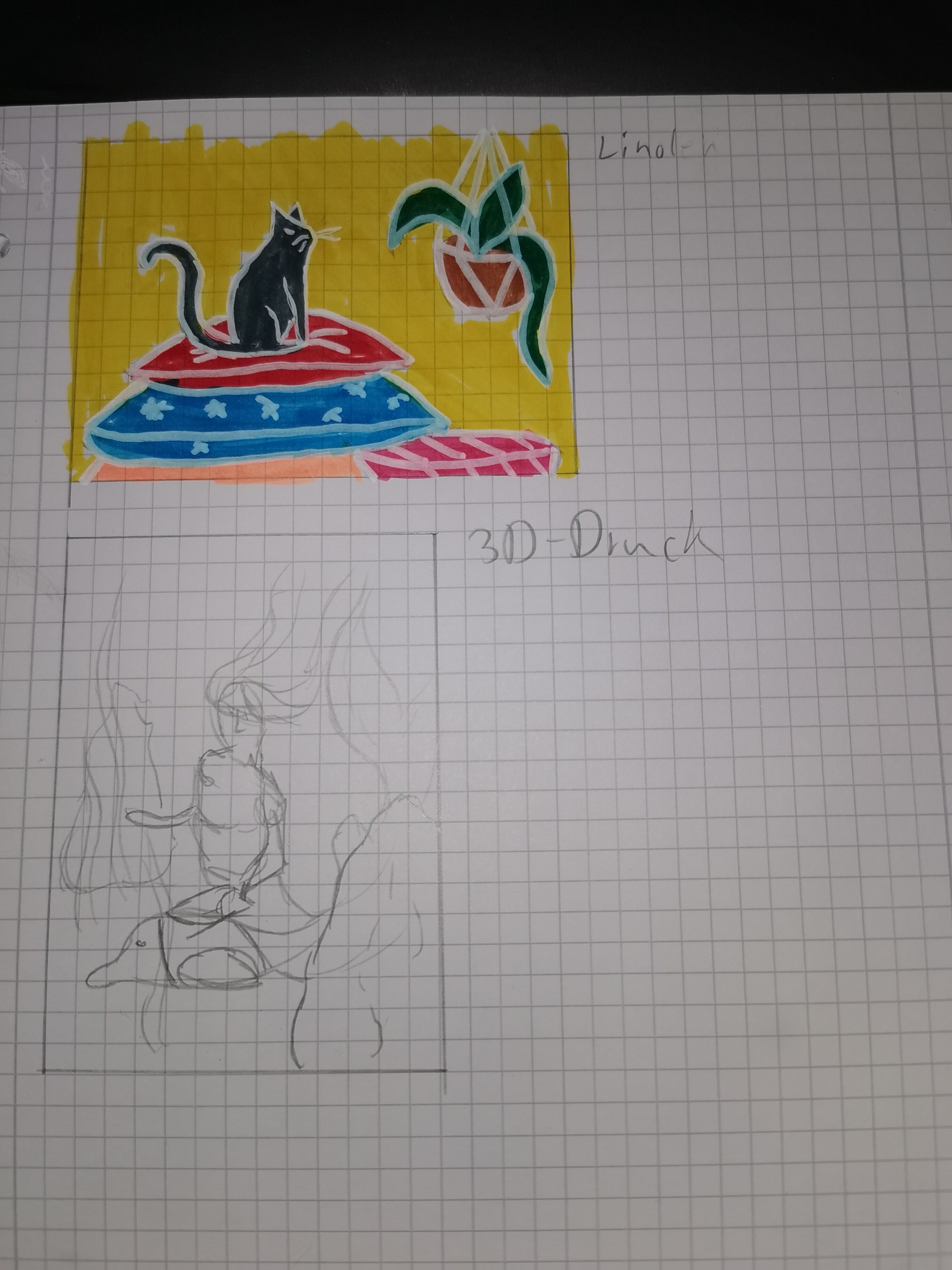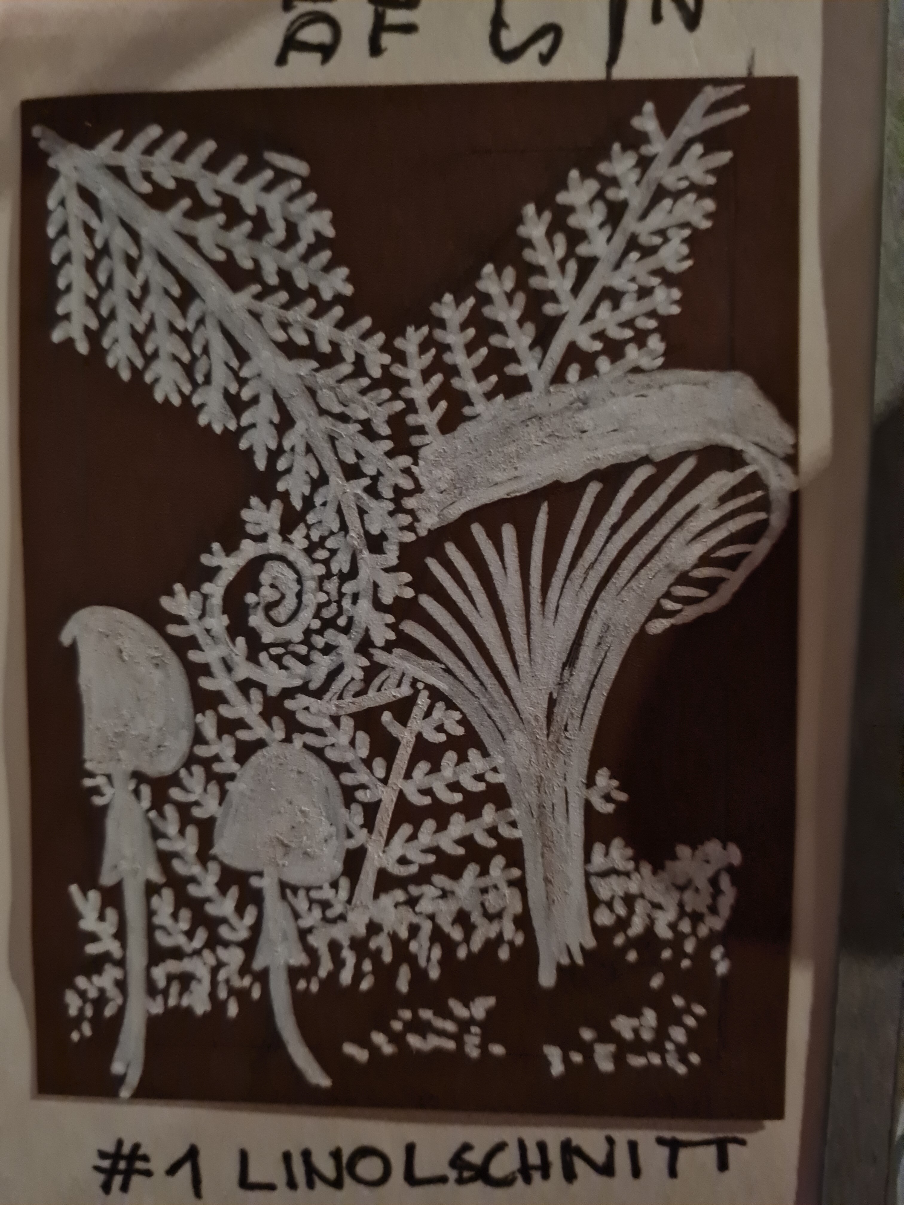 Als erstes hatte ich verschiedene Ideen für den Linoldruck gesammelt, die mich alle nicht 100% überzeugt haben…