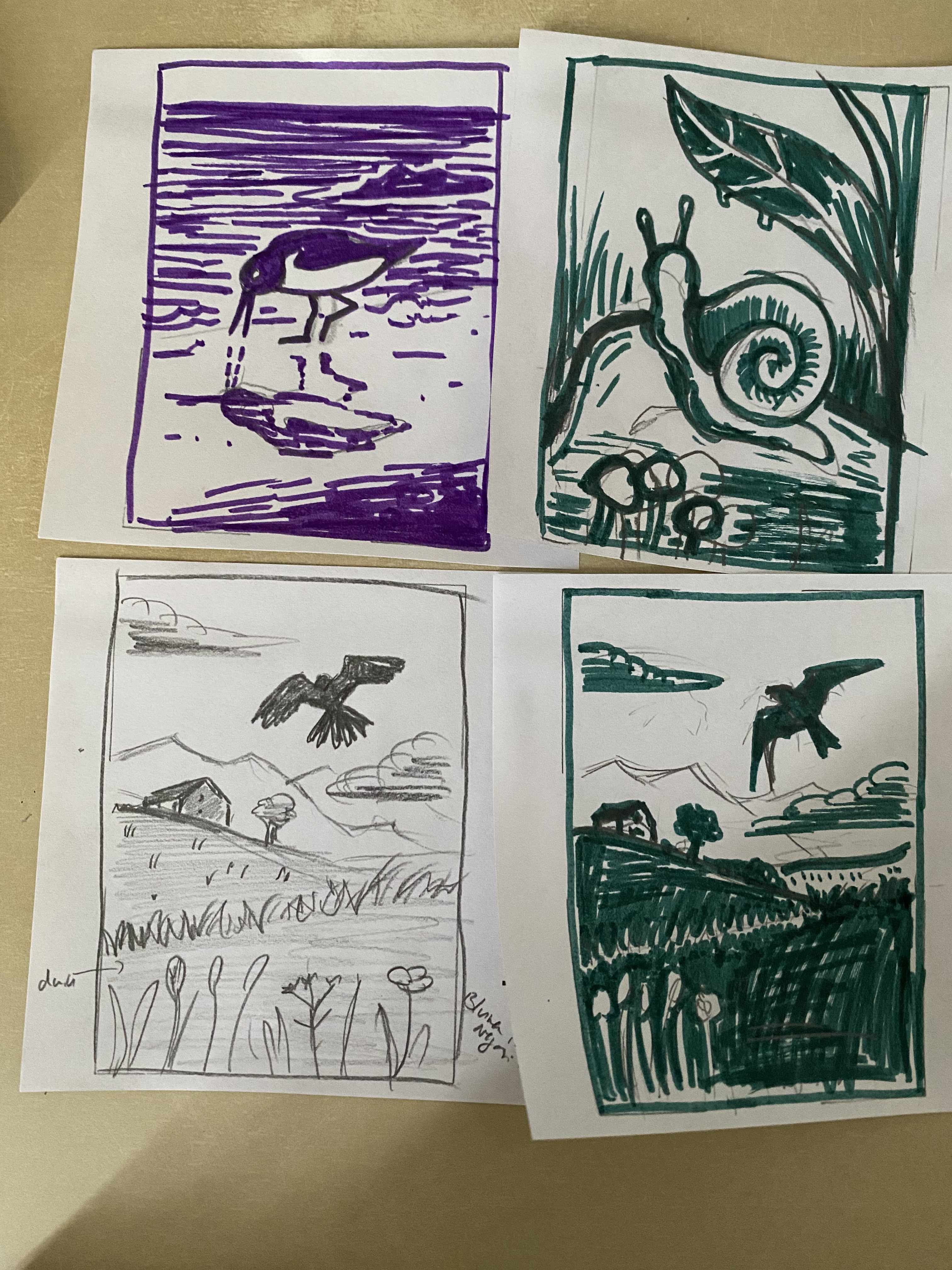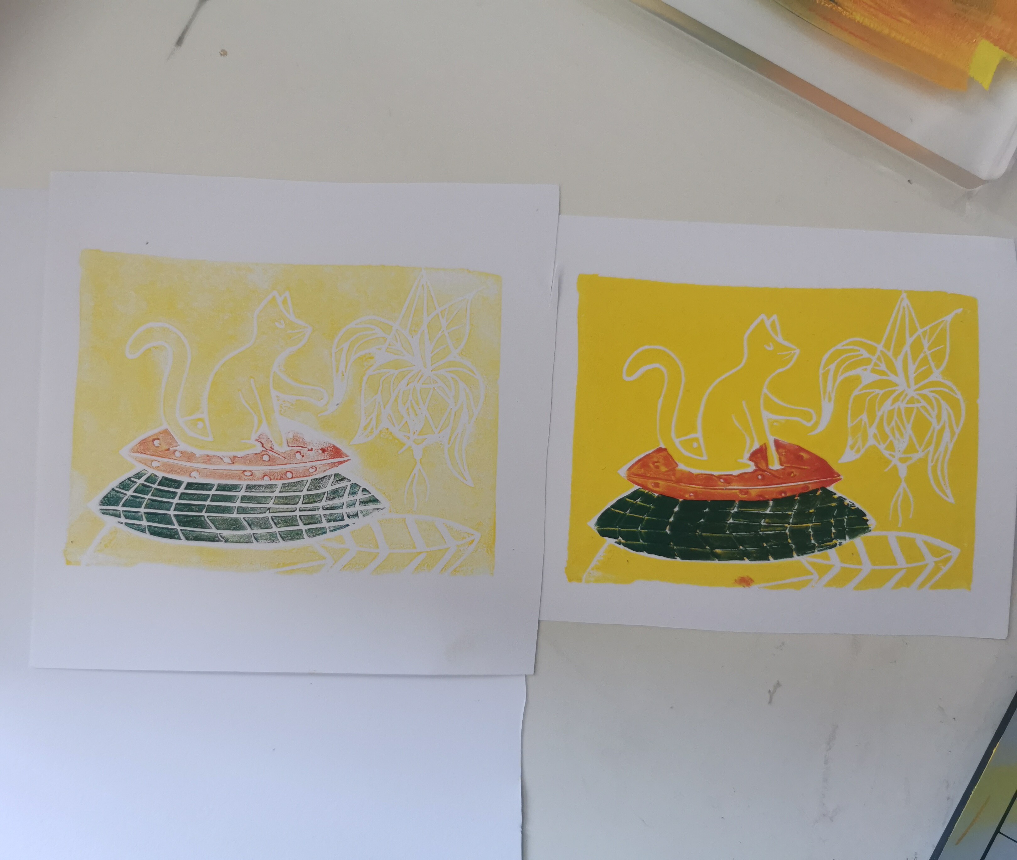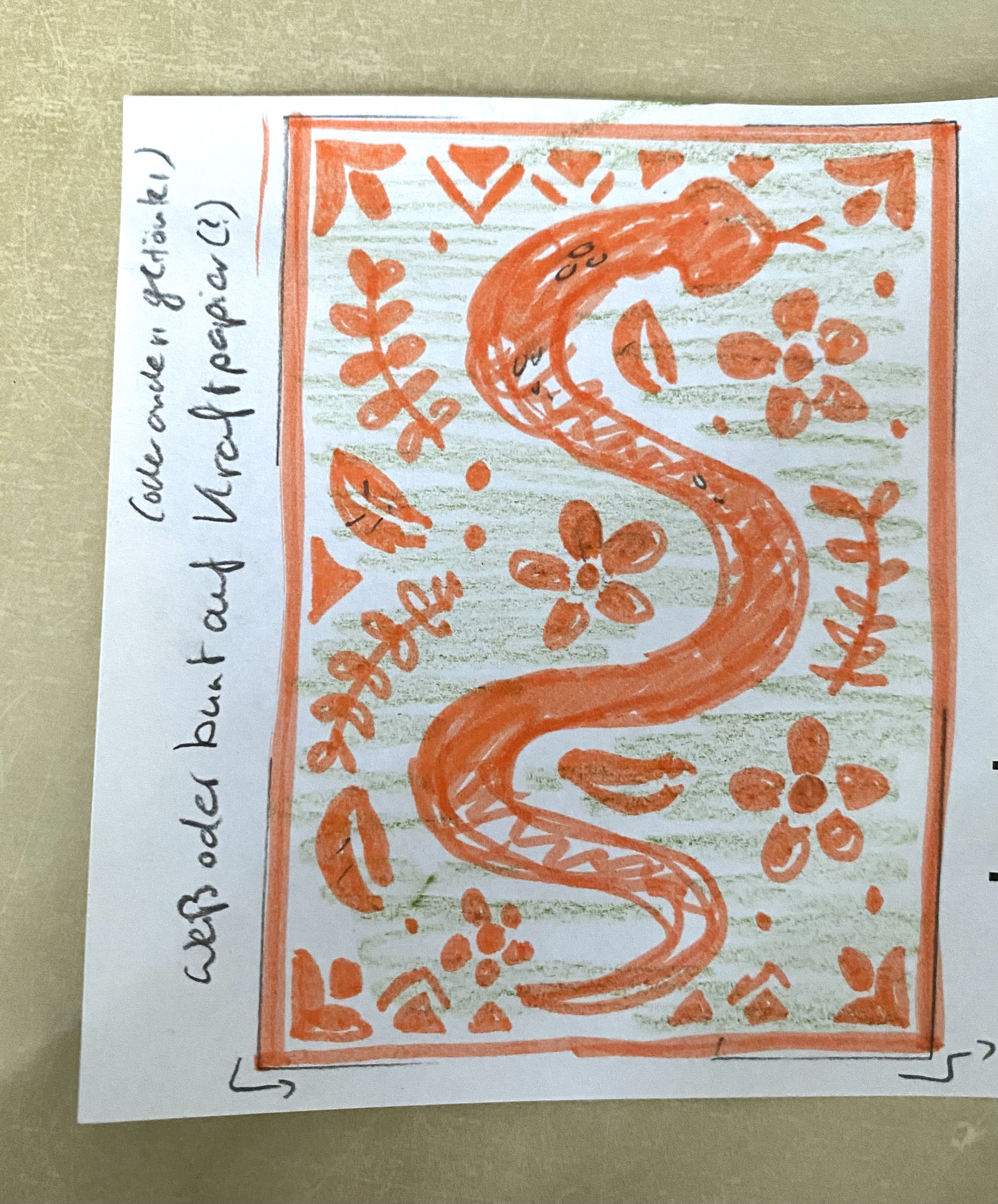 Als erstes hatte ich verschiedene Ideen für den Linoldruck gesammelt, die mich alle nicht 100% überzeugt haben…