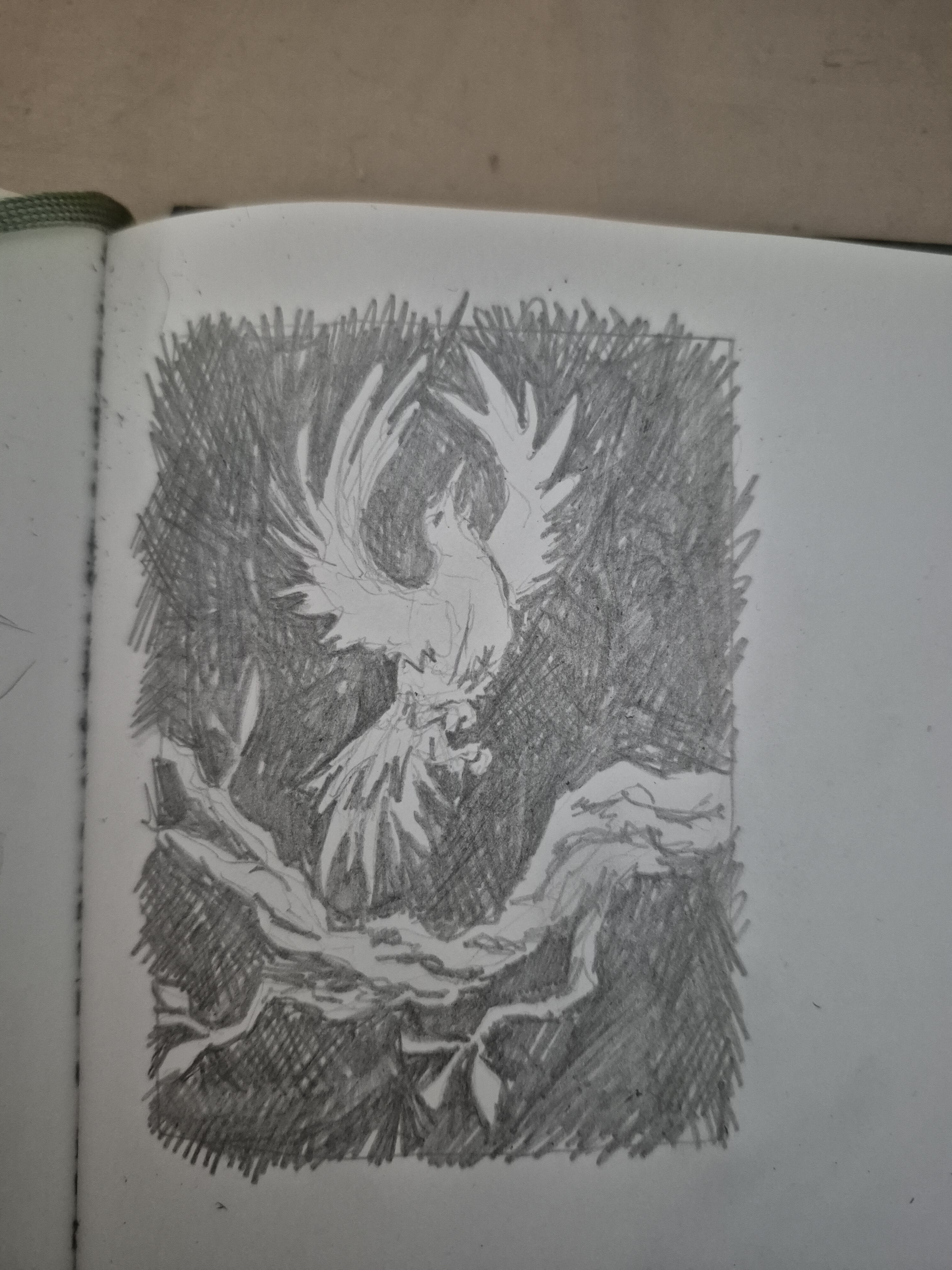 Edit: Hab ein bisschen skizziert und zumindest ein Motiv, das mir zusagt. Würde euch das auch gefallen?