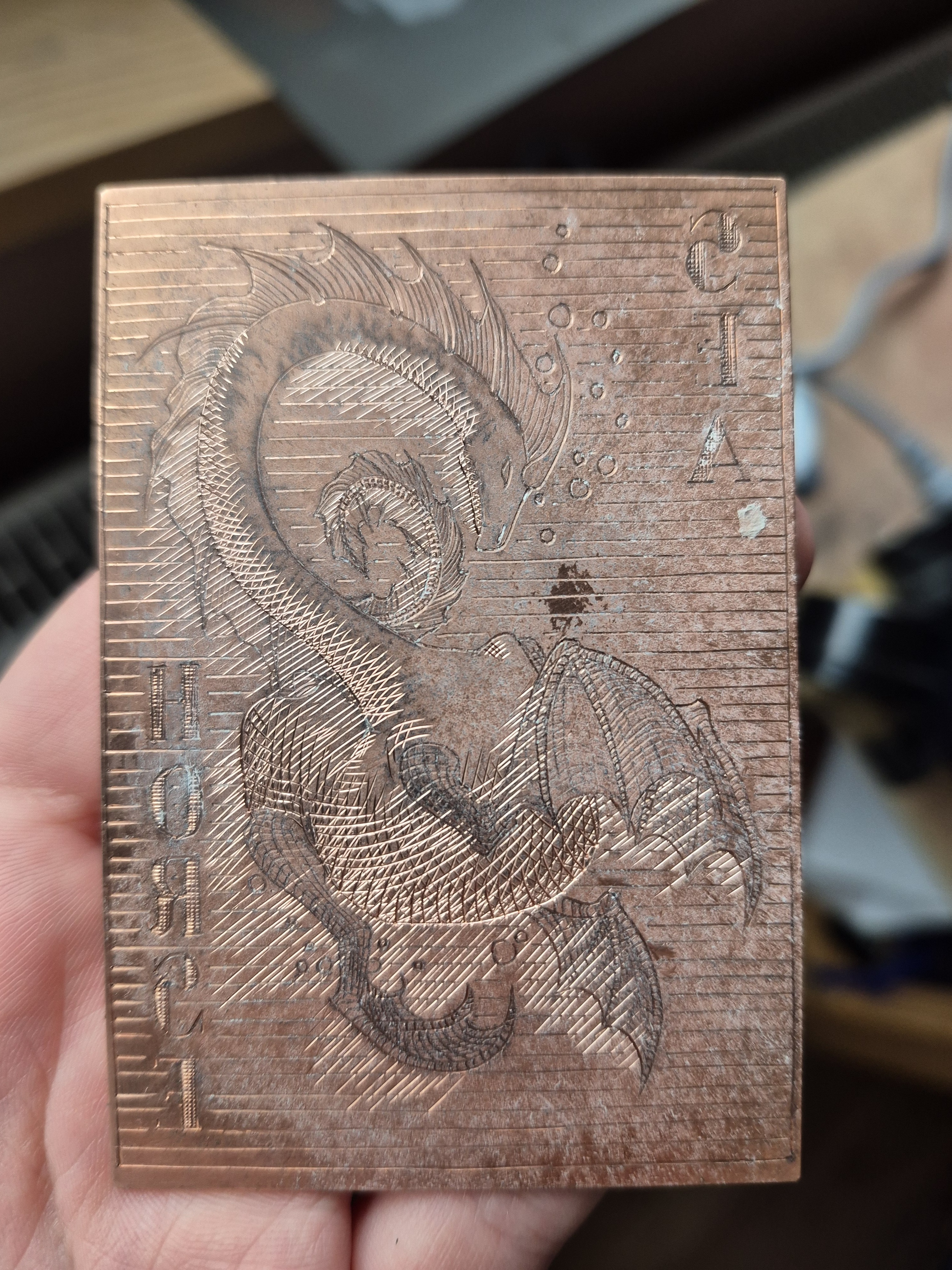 Edit 10.10.: Hab mich heute in die Werkstatt gesetzt und am Kupferstich weiter gemacht… und ihn potentiell ruiniert. Sehe ich dann morgen, wenn ich runter gehe und drucke…