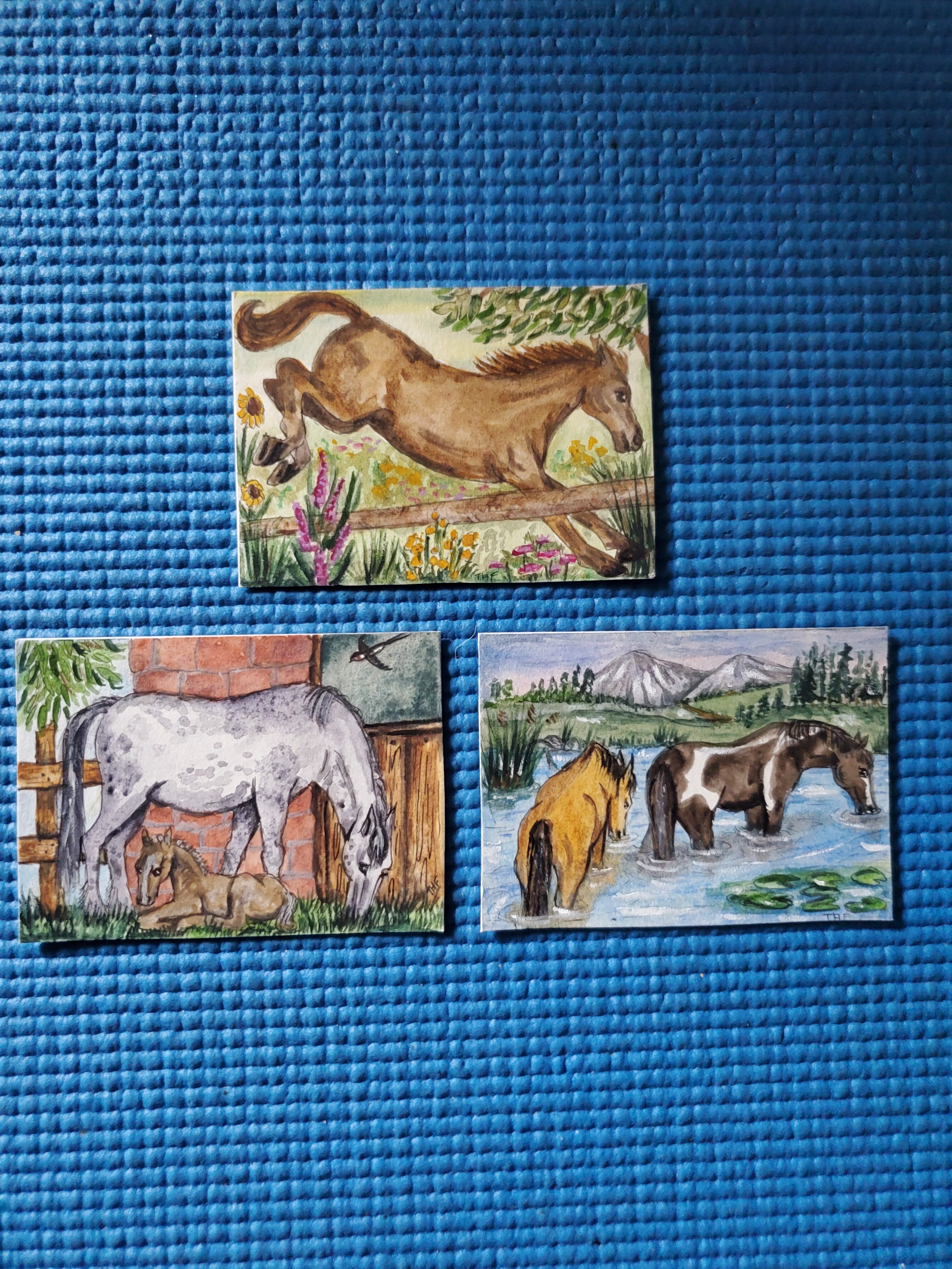 Die drei Karten sind sehr schön geworden. Die Karte mit den Pferden im Wasser gefällt mir besonders gut.