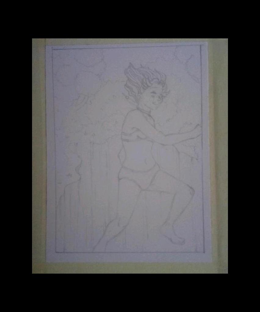 Eigentlich sollte man im Hintergrund noch die perplexen Jungs sehen, aber das war von der Ansicht her total falsch, also habe ich den Hintergrund nochmal etwas abgeändert…100% überzeugt es mich nicht, aber denkt euch bitte einfach, dass sie von einer noch höher gelegenen Klippe oben links abgesprungen ist v__v Die Pose mag ich nämlich sehr und will die nicht nochmal komplett neu machen, auch wenn ich mir nicht sicher bin, ob das von uns aus rechte Bein nicht etwas zu kurz geraten ist? Für mich sieht es nicht falsch aus, aber irgendwie bin ich mir nicht sicher. Ich hoffe, ihr mögt das Motiv, denn ich wollte unbedingt auch noch eine Karte zeichnen, die sich ganz auf einen der Charaktere konzentriert und NICHT super gruselig ist ^^