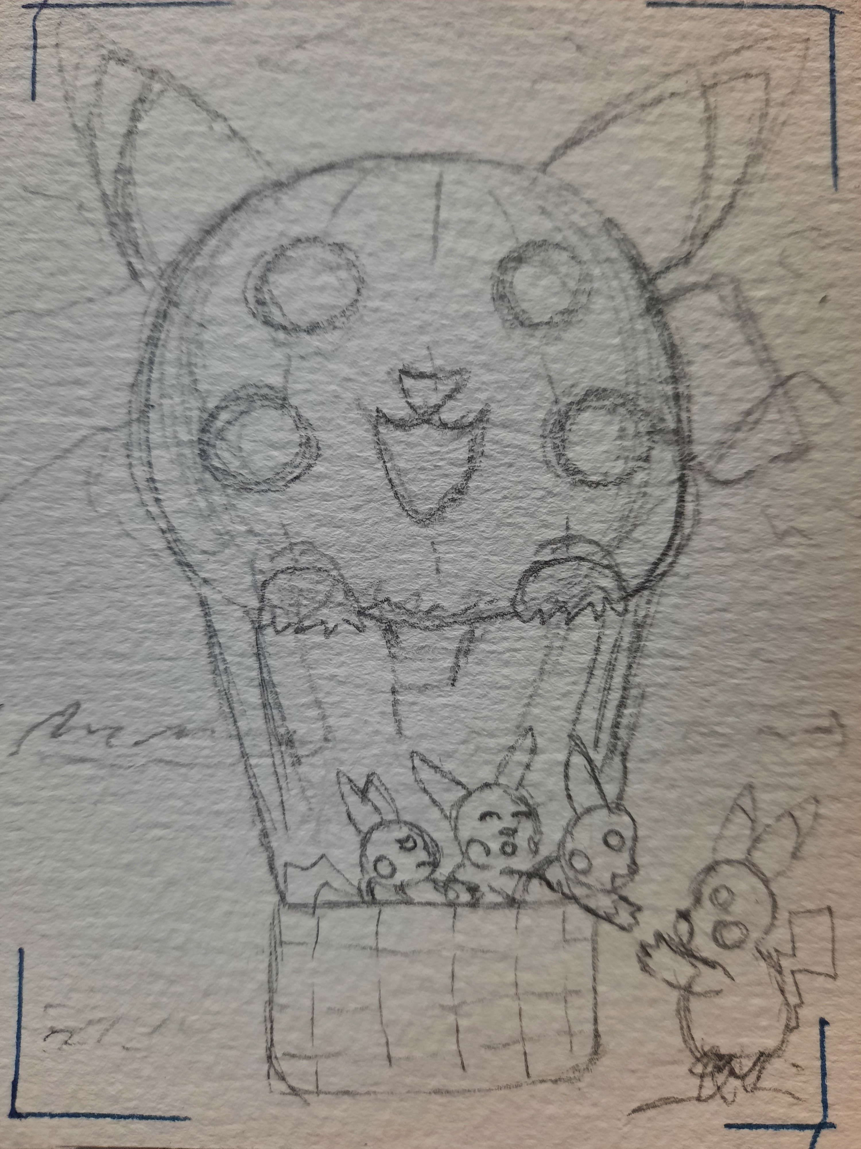 Würde mich koko anschließen - finde die Heißluftballon-Idee sehr cool und wäre auf jeden Fall zugelassen. Eventuell könntest du den Bildaufbau noch ein wenig anpassen und die eigentlichen Pikachus etwas größer zeichnen, aber ansonsten super c: