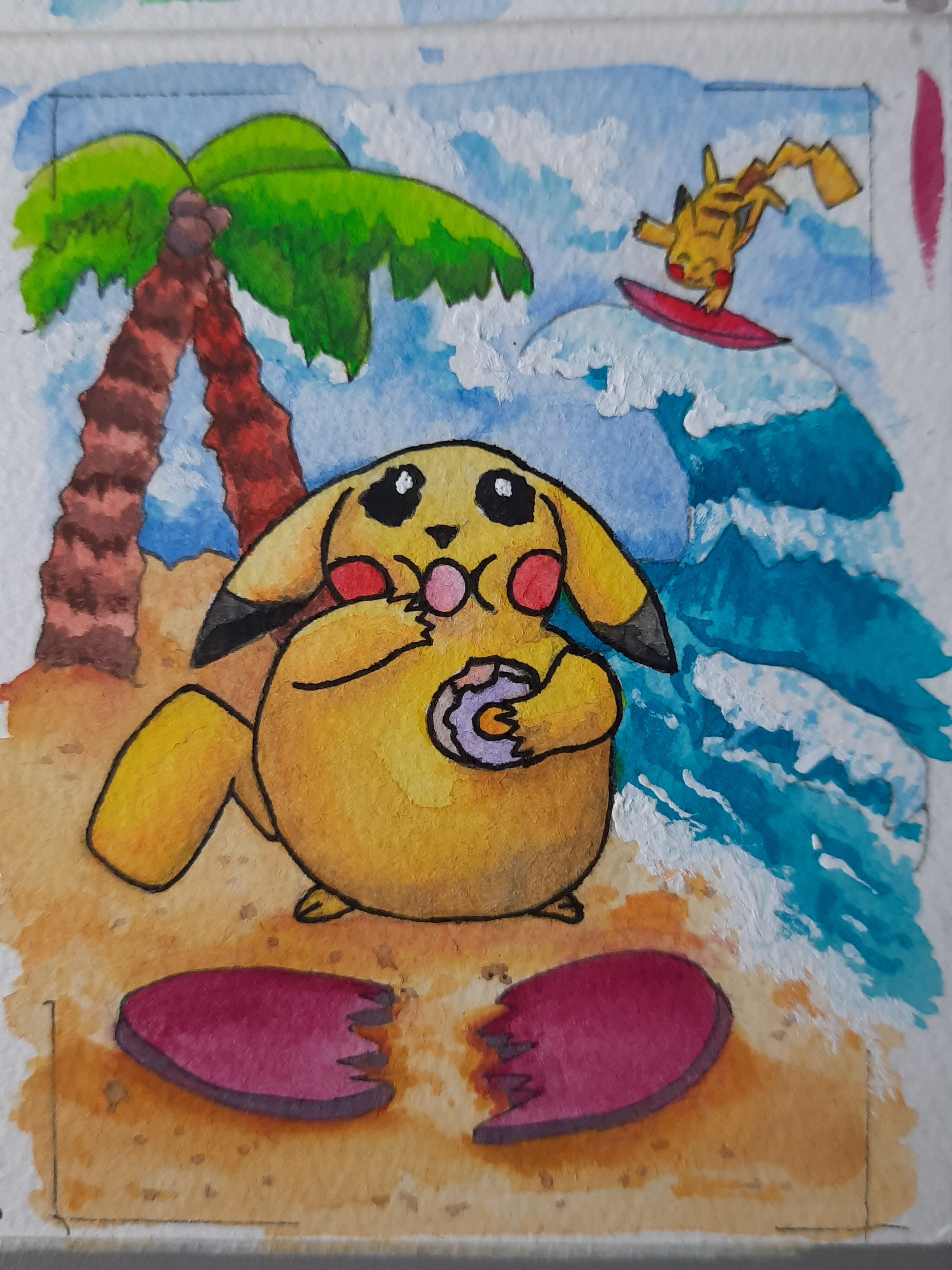 Nur noch ein paar Kleinigkeiten: Ich glaube, du hast vergessen die Augen und die Nase vom Pikachu im Vordergrund zu colorieren? Und beim Pikachu im Hintergrund fehlt noch der braune Teil des Schwanzes: