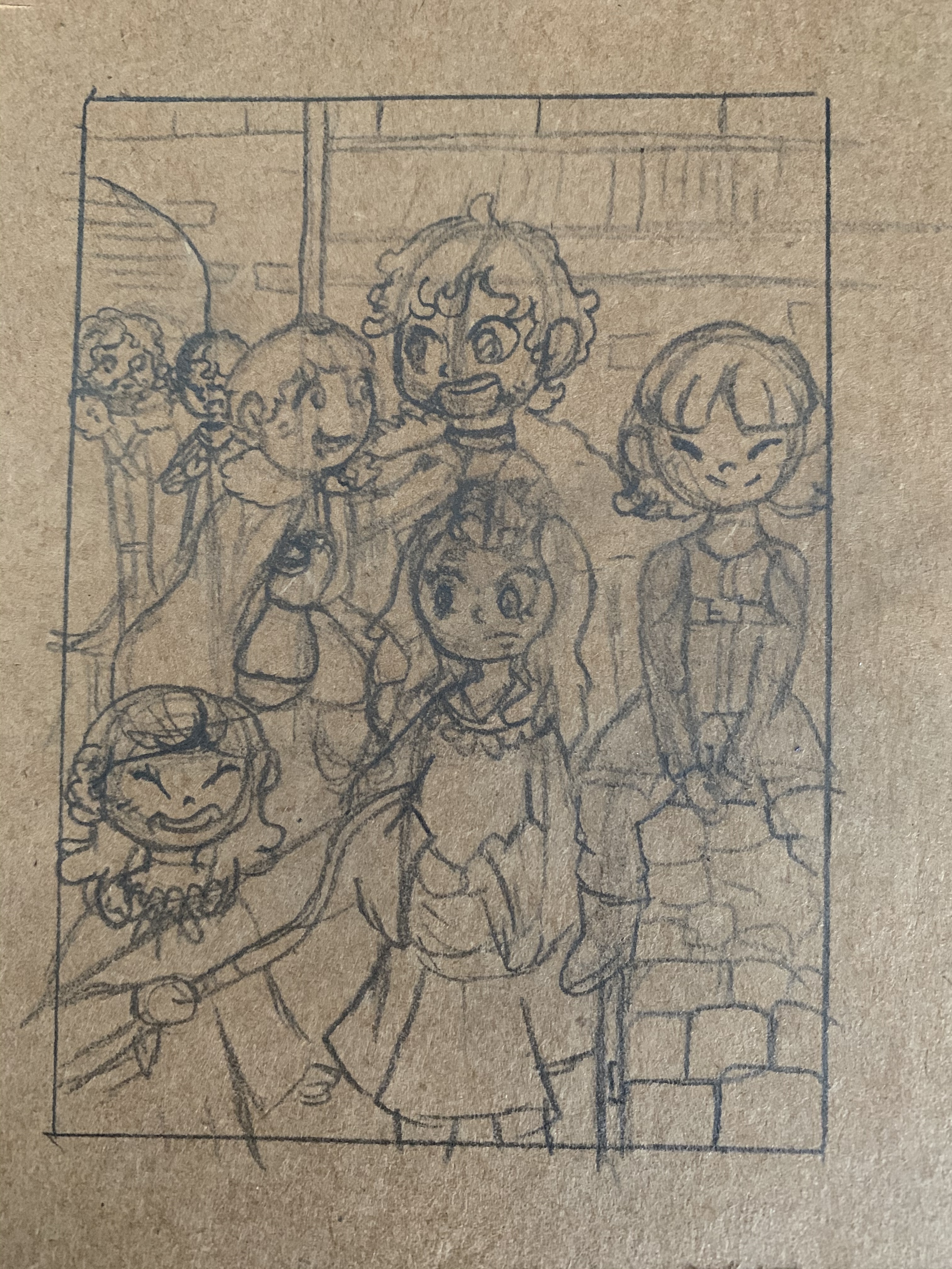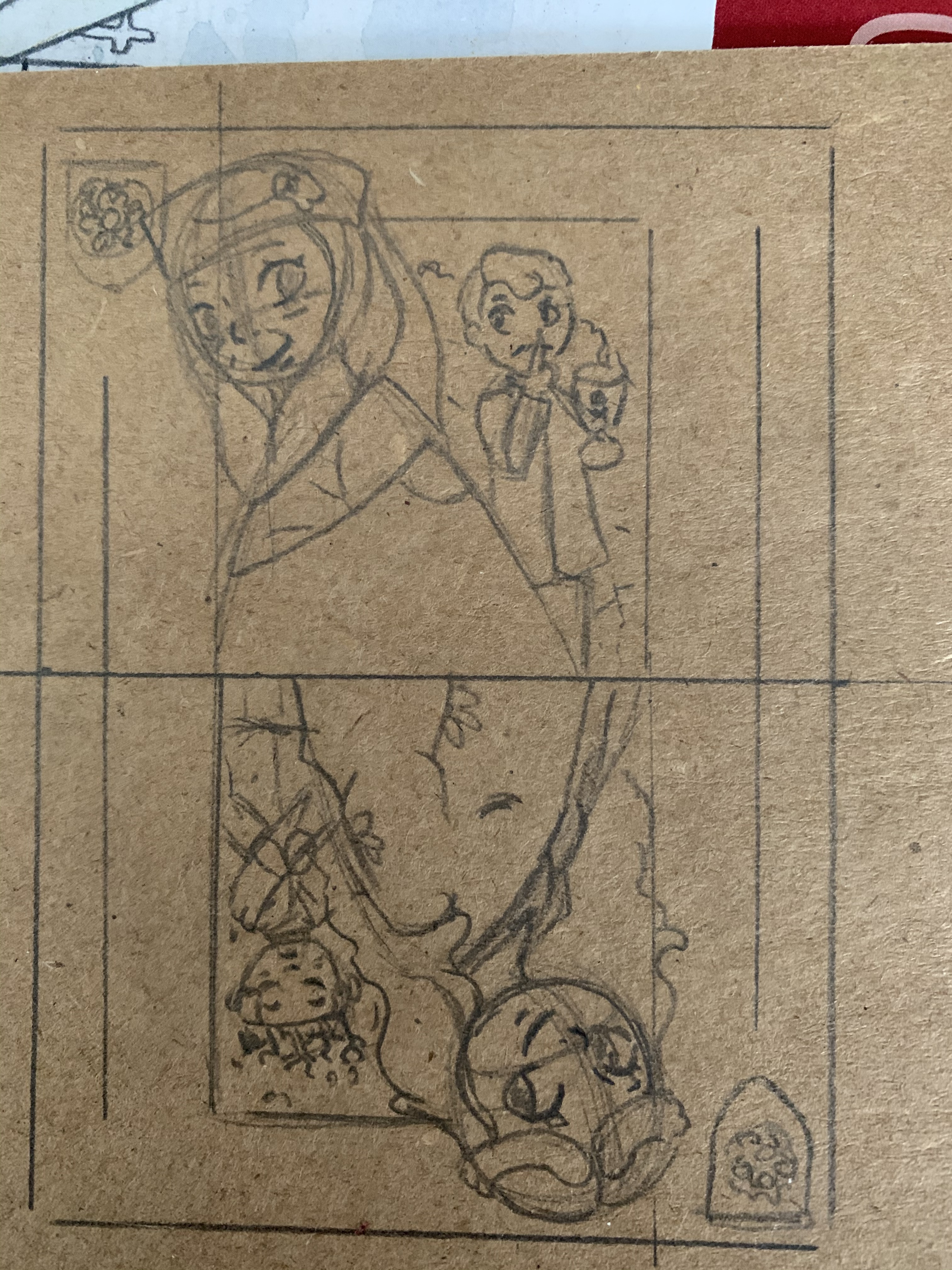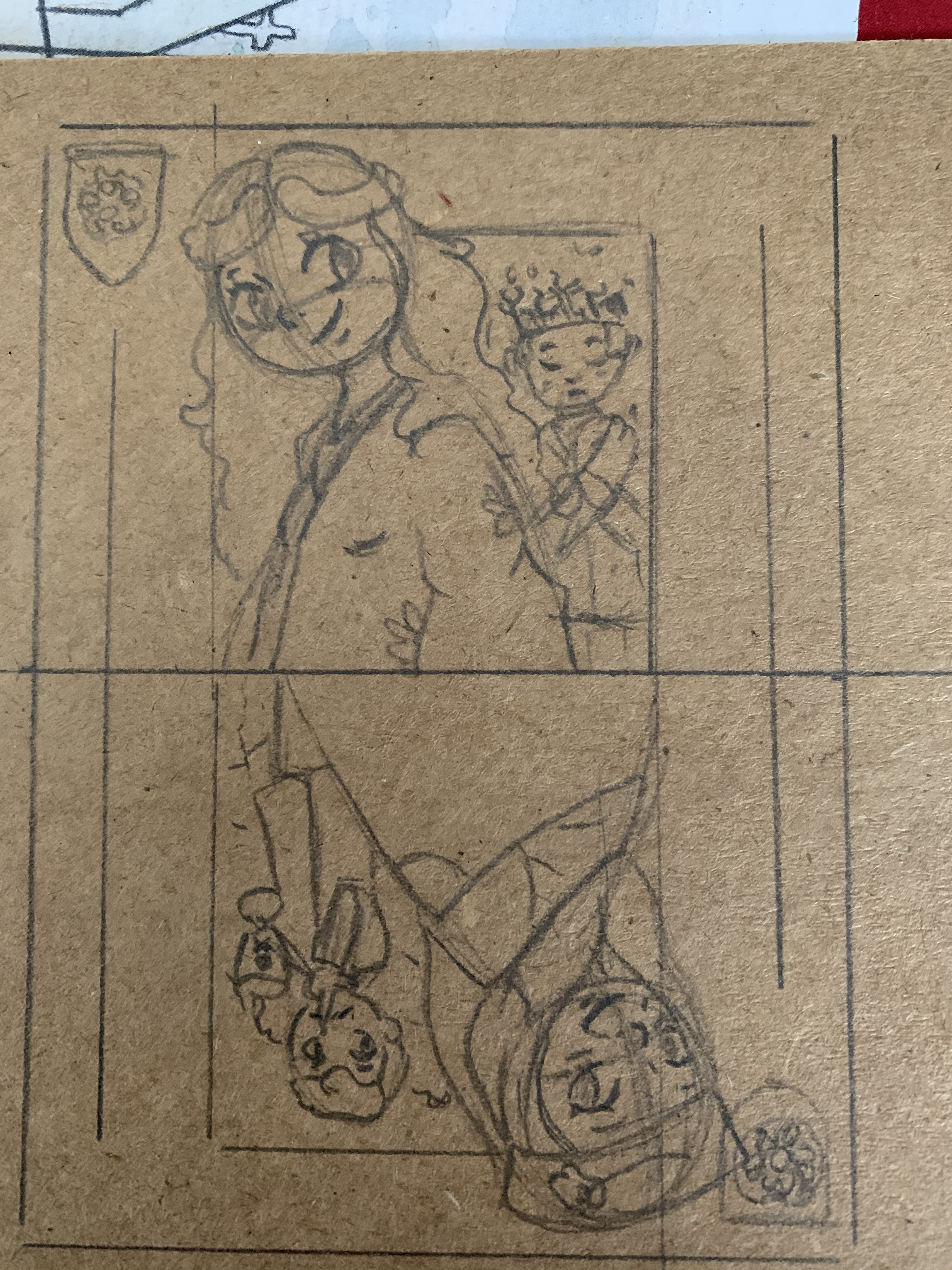 Es soll auf Kraftpapier auch komplett die Karte mit weiß und Schattierung gearbeitet werden, sodass kein braun mejr zu sehen wäre. Im Hintergrund sieht man jeweils noch Kleinfinger und Joffrey.
