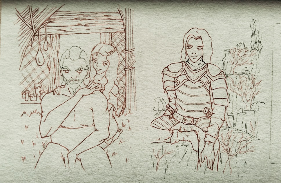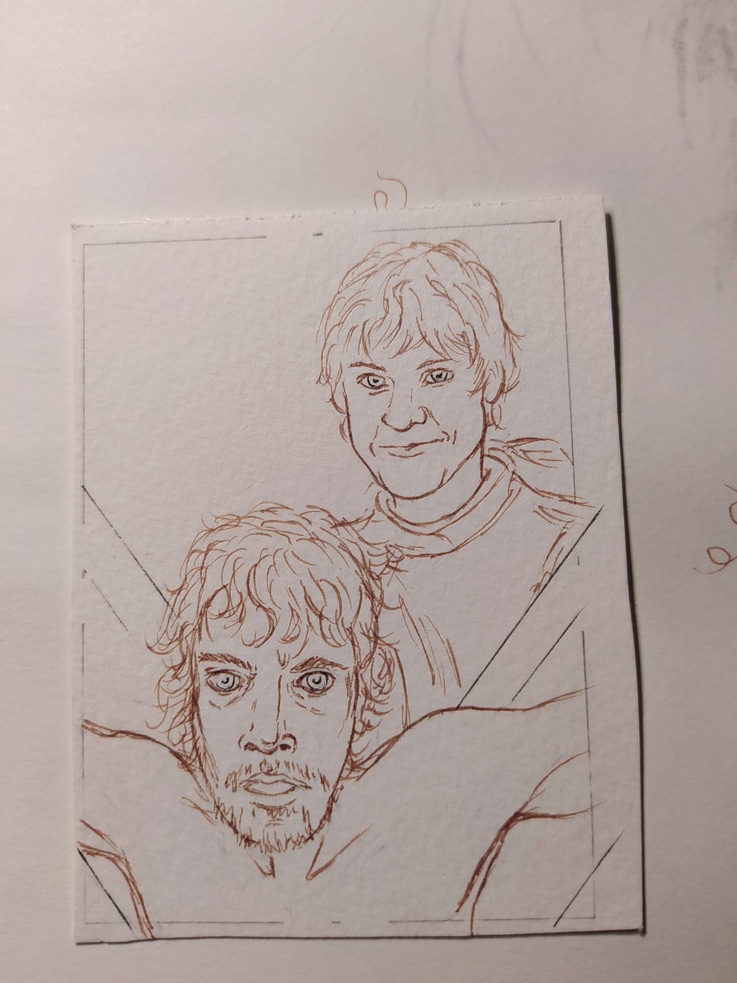 ich habe 2 Outlines fertig. Auf der ersten Karte Drogo mit Daenerys und auf der zweiten Jaqen h’ghar alias Niemand.