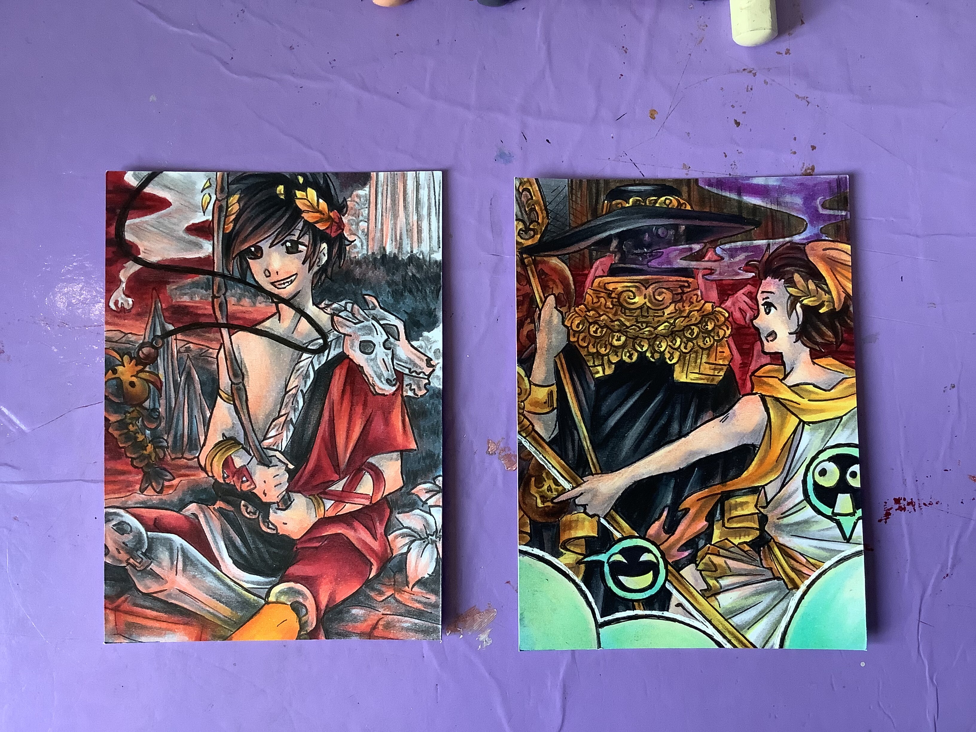 Also Outlines und Colo der bisher gezeigten Skizzen hab ich mir jetzt fürs Wochenende vorgenommen… Bei Karte drei bin ich gerade etwas Ideenlos… Denke aber dass ich das in der restlichen Zeit hinbekomme. Gegen ne Verlängerung hätte ich aber auch nix öwö