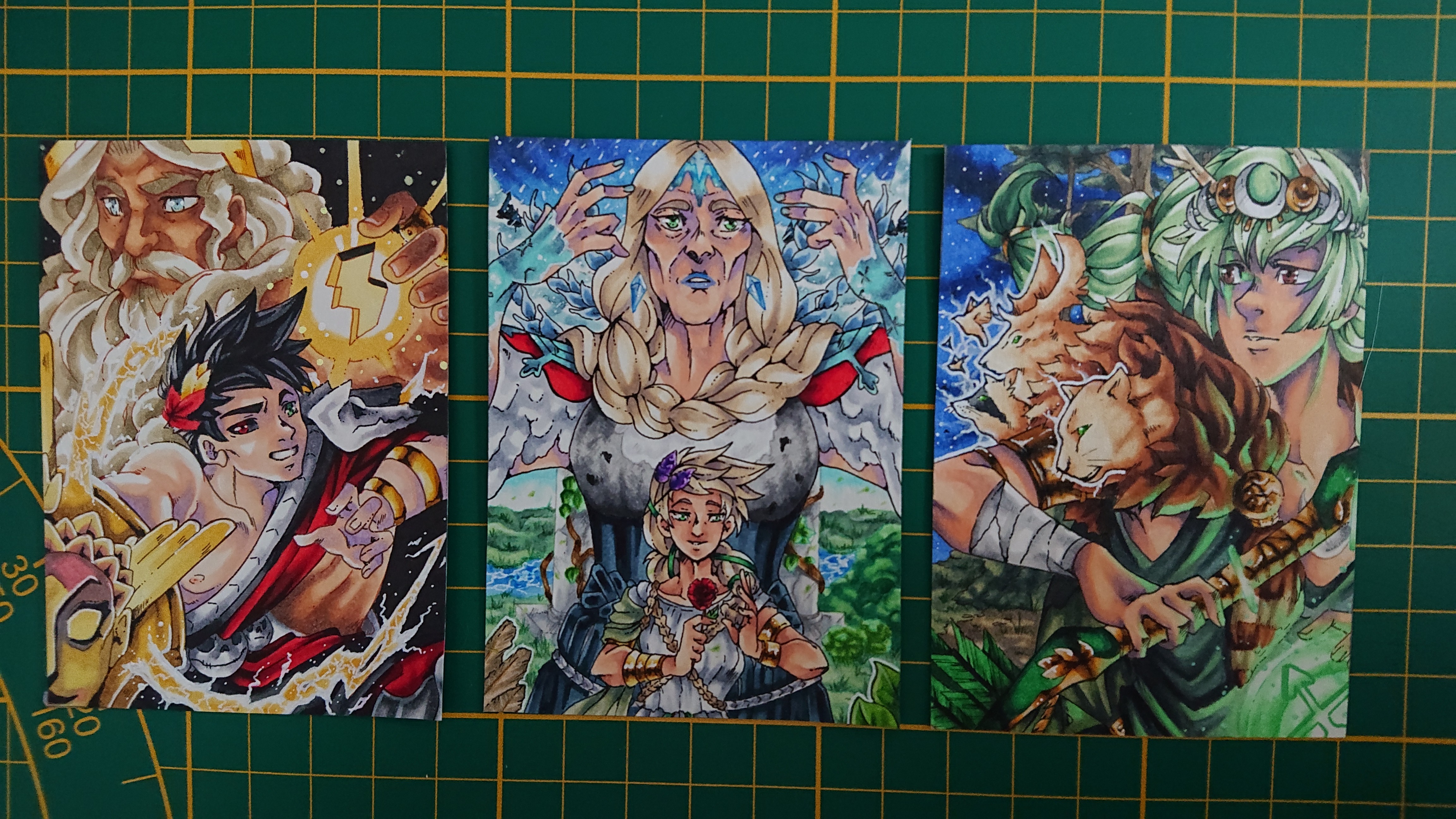 Es ist mir nur aufgefallen, dass bei der “Olympus smite you” Karte die linke untere Kante etwas schräg abgeschnitten ist und bei “Poseidon’s Segen” die beiden langen Seiten minimal schief sind.