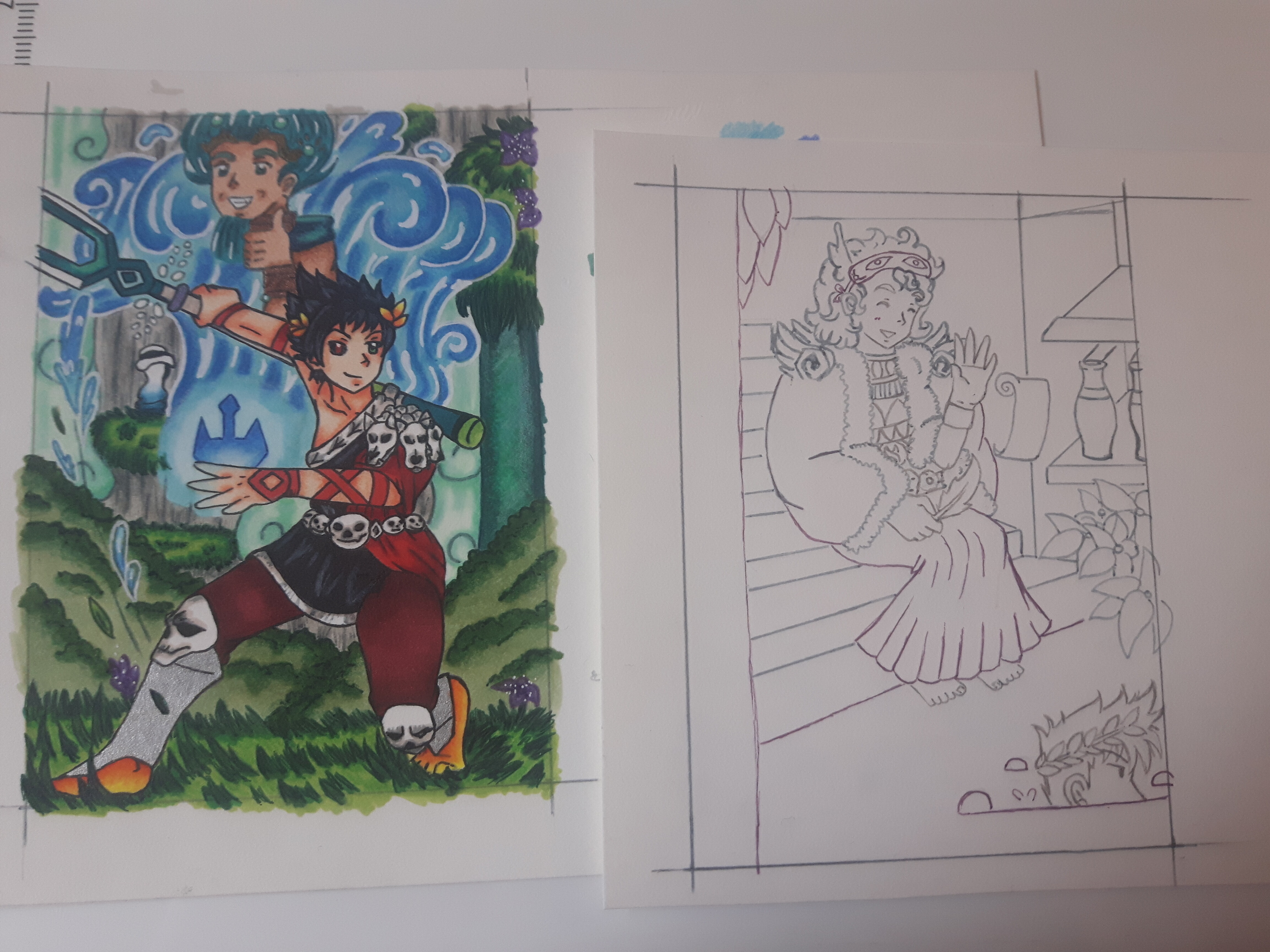 Ich muss die Tage dann noch scannen, aber hier sind meine fertigen Beiträge schon mal auf einem Foto und dazu ein close-up der dritten Karte