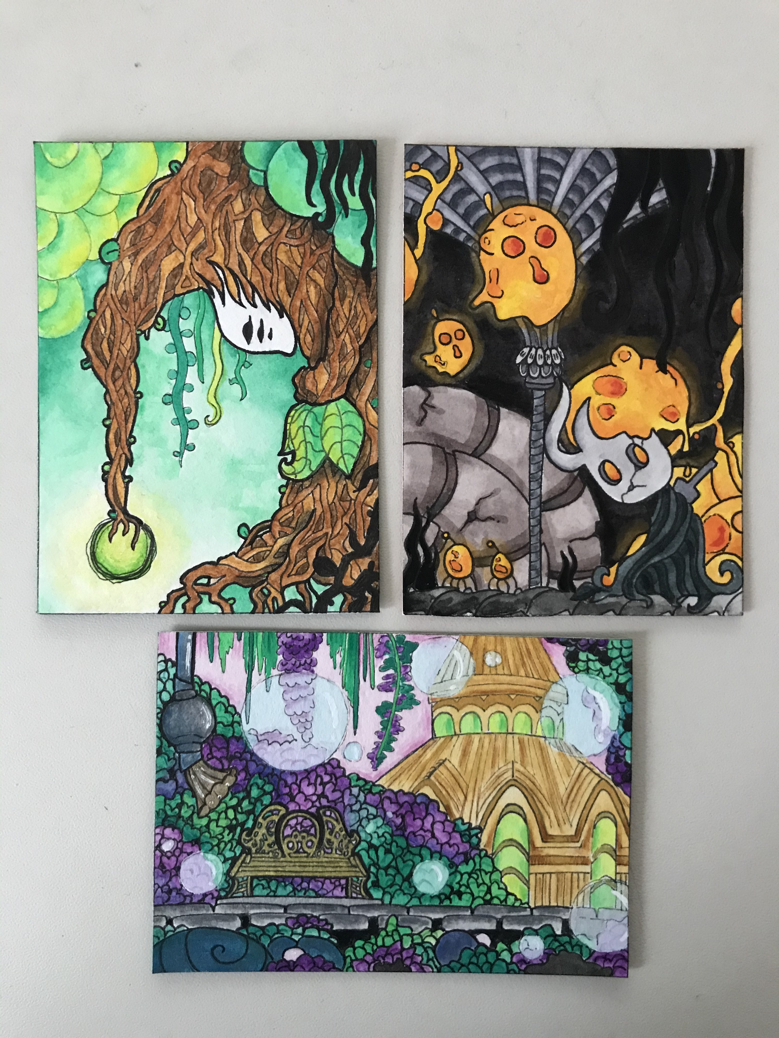 ich finde die beiden Motive auch sehr gelungen. Die Träne Irmas wirkt zwar wirklich ein wenig leer im unten linkeren Bereich, aber durch den “Schein” und den Farbverlauf wird der fehlende Hintergrund kaschiert. Alternativ könntest Du überlegen, ob Du ohne Outlines noch ein wenig Hintergrund dazukolorieren möchtest (müsstest Du aber nicht).