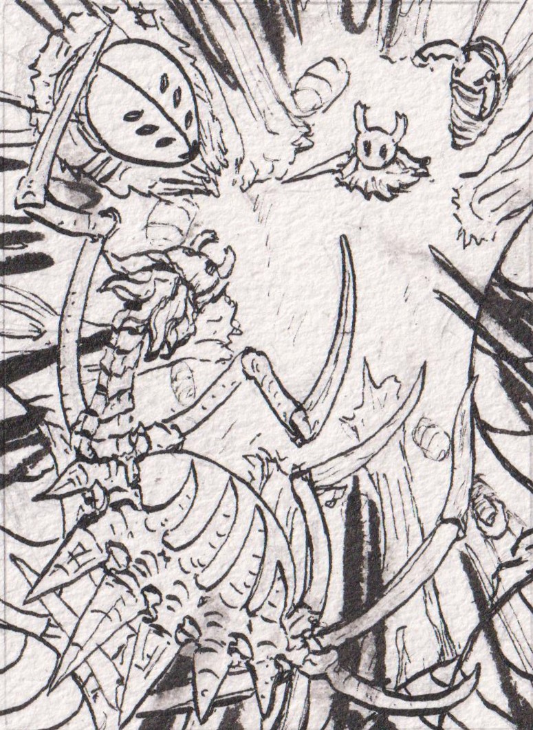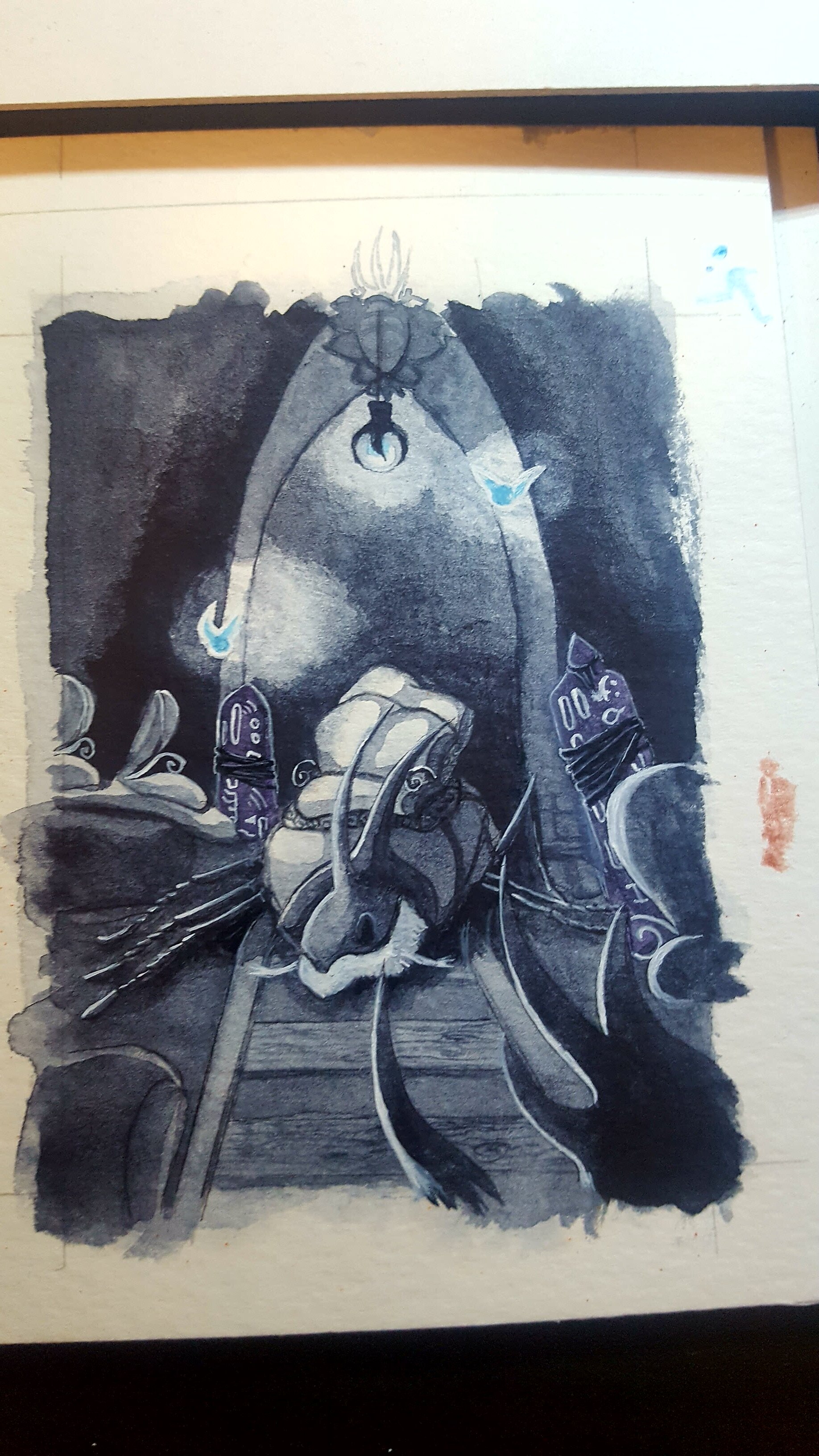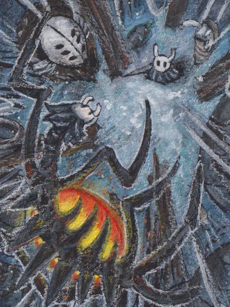 Hollow Knight ist einfach ein so unglaublich hübsches Spiel. Ich werde die Aktion auf jeden Fall weiter stalken. (Und ich glaube meine nächste Poster Color Karte probiere ich auf schwarzem Papier,