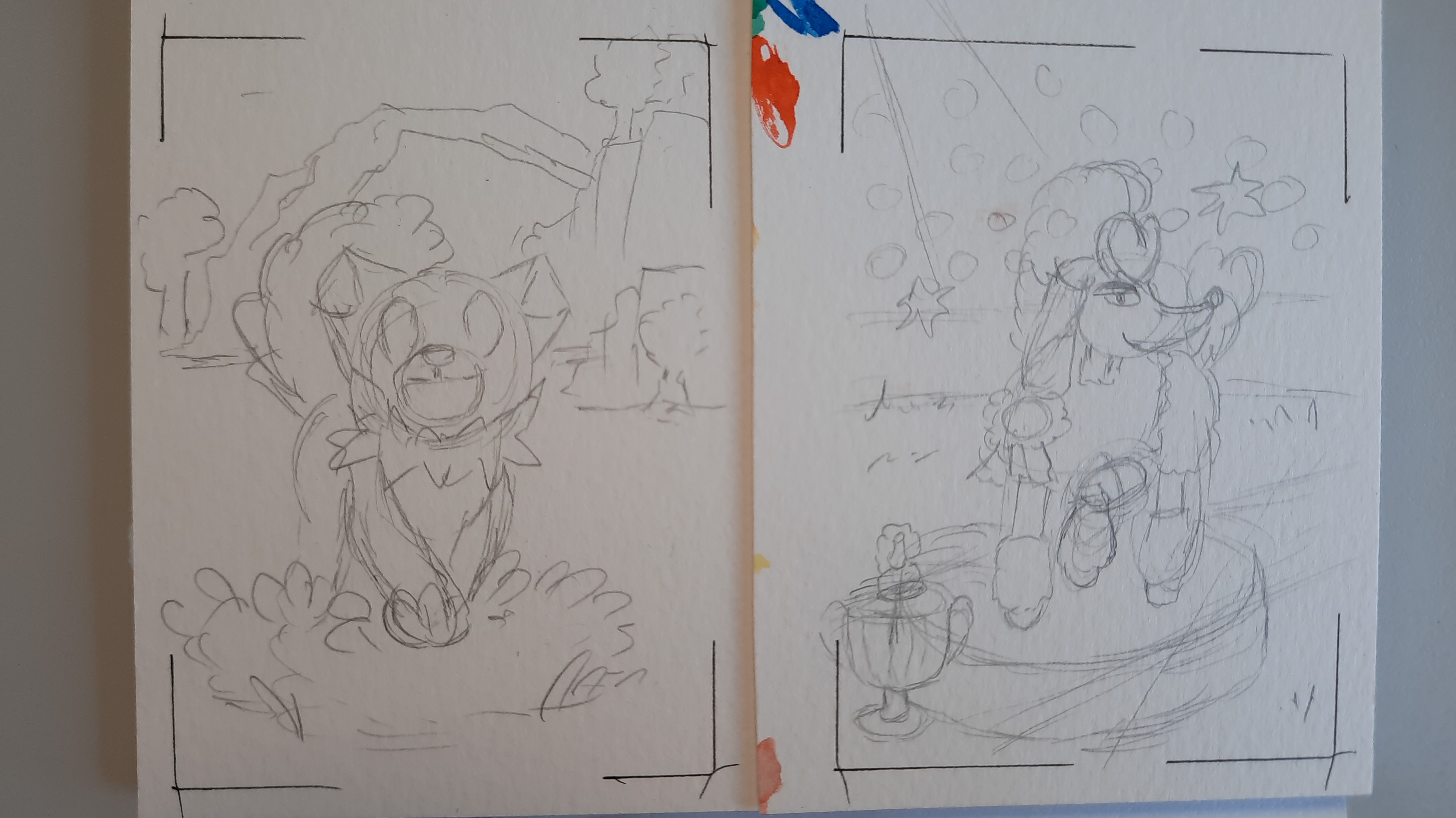 Ich würde euch gerne auch schon mal meine ersten zwei Skizzen zeigen zum Absegnen.