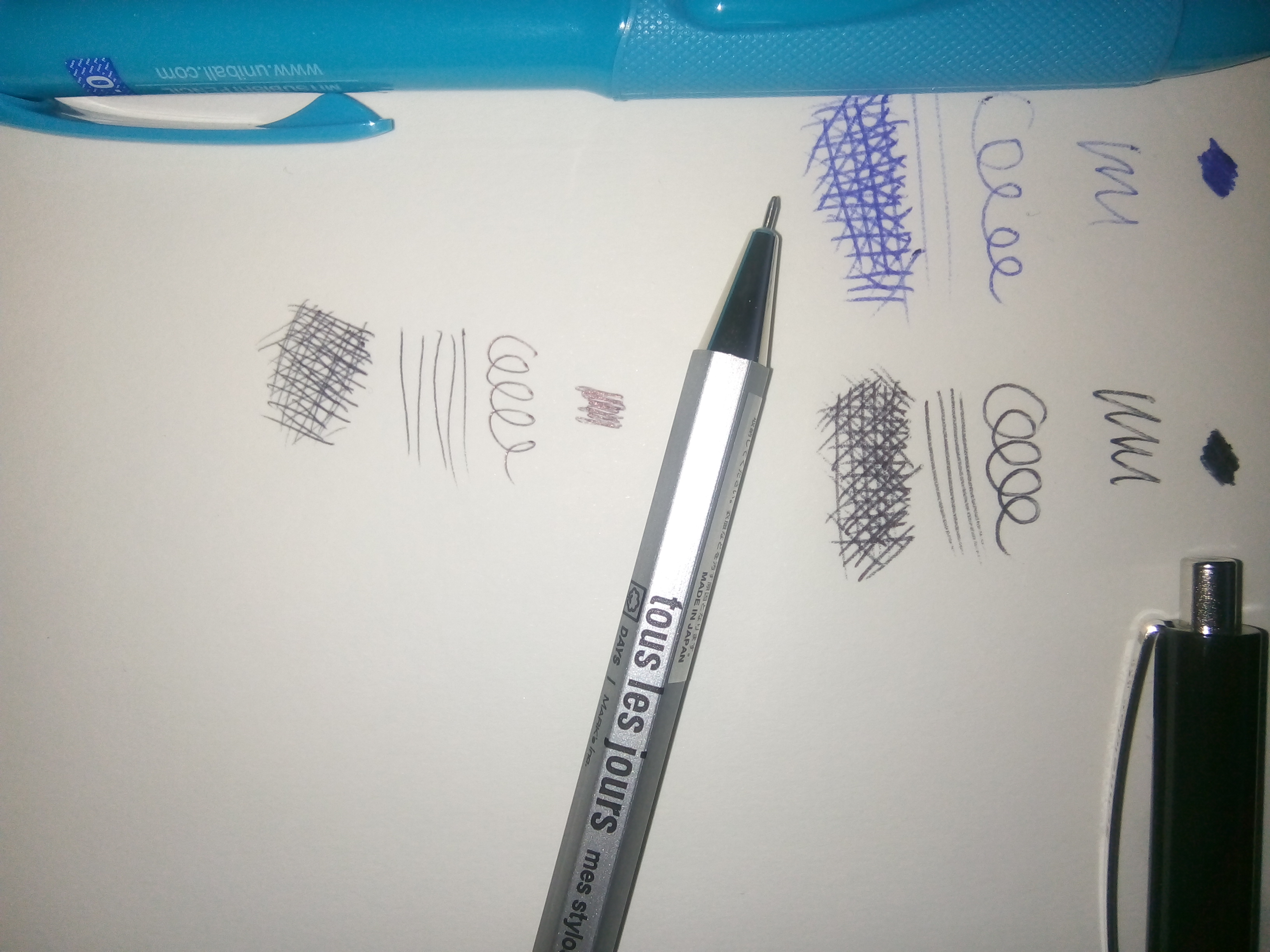 Ich habe mir heute Kugelschreiber ausgesucht und war doch erstaunt, wie unterschiedlich sie sind. Nicht nur von der Farbe. Auch von der Strichstärke. Aber nun bin ich feuer und Flamme.