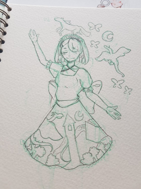 Ich habe bereits 2 Skizzen, wobei ich eine schon am colorieren bin (Wahrscheinlich wird diese heute abend fertig) und die andere muss nur noch etwas bearbeitet werden(mir gefällt ihr Oberteil bisher noch nicht so.)