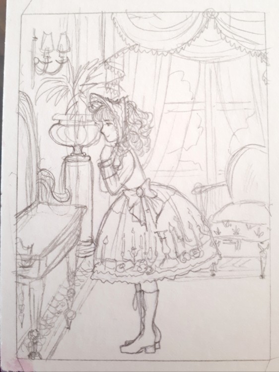 Die dritte folgt vermutlich erst morgen, ich bin mit meiner Konzeptskizze nicht mehr zufrieden und werde wie auch bei der sich ankleidenden Lolita ggf. Änderungen vornehmen.